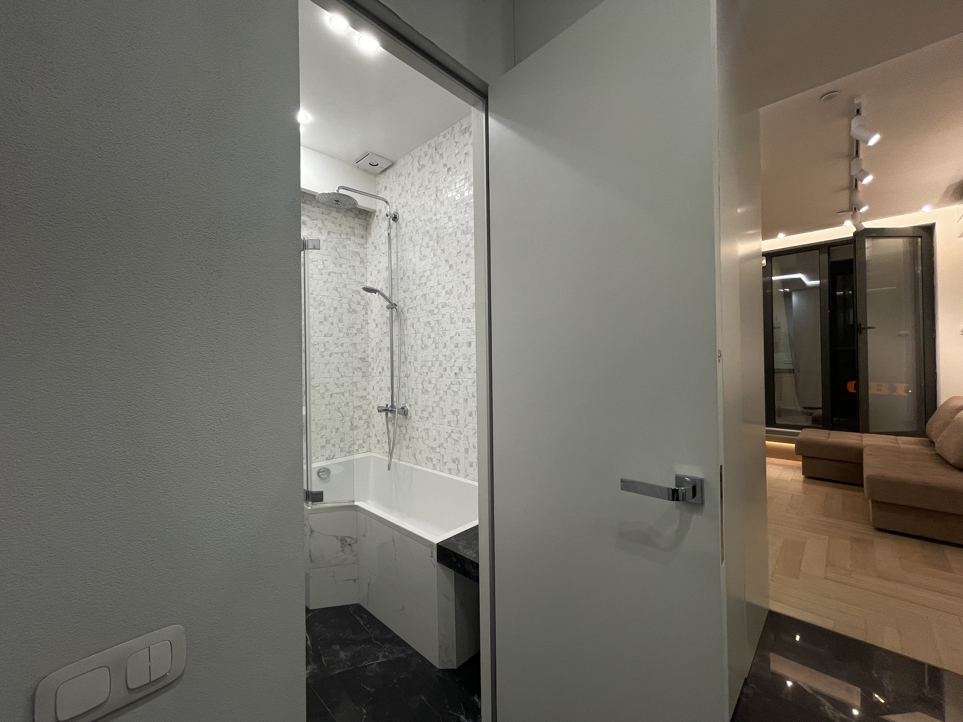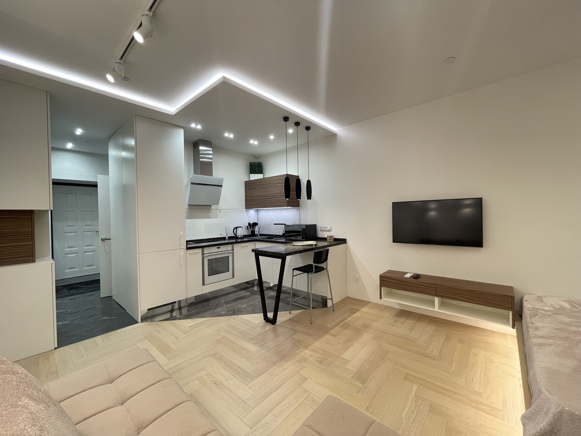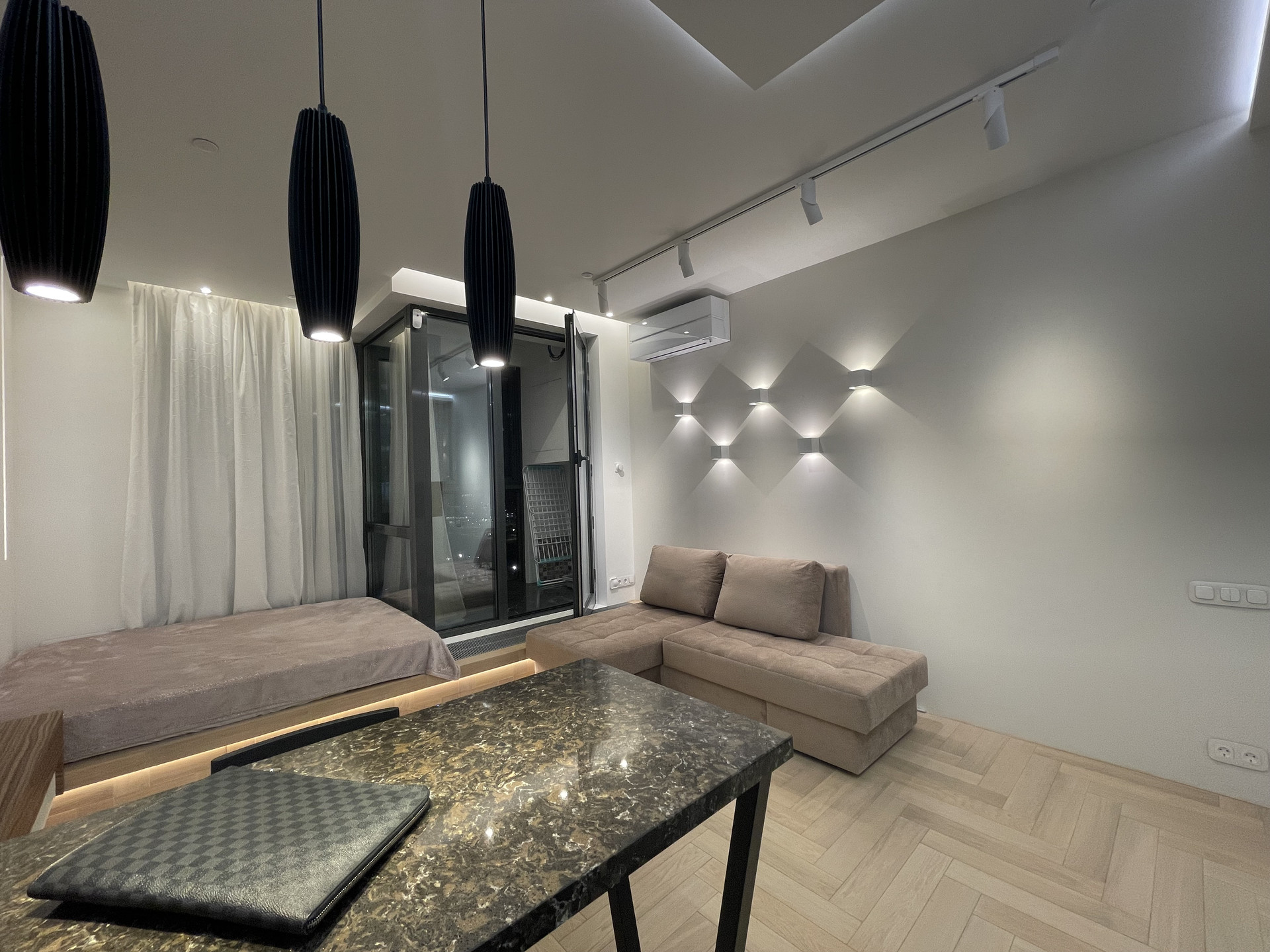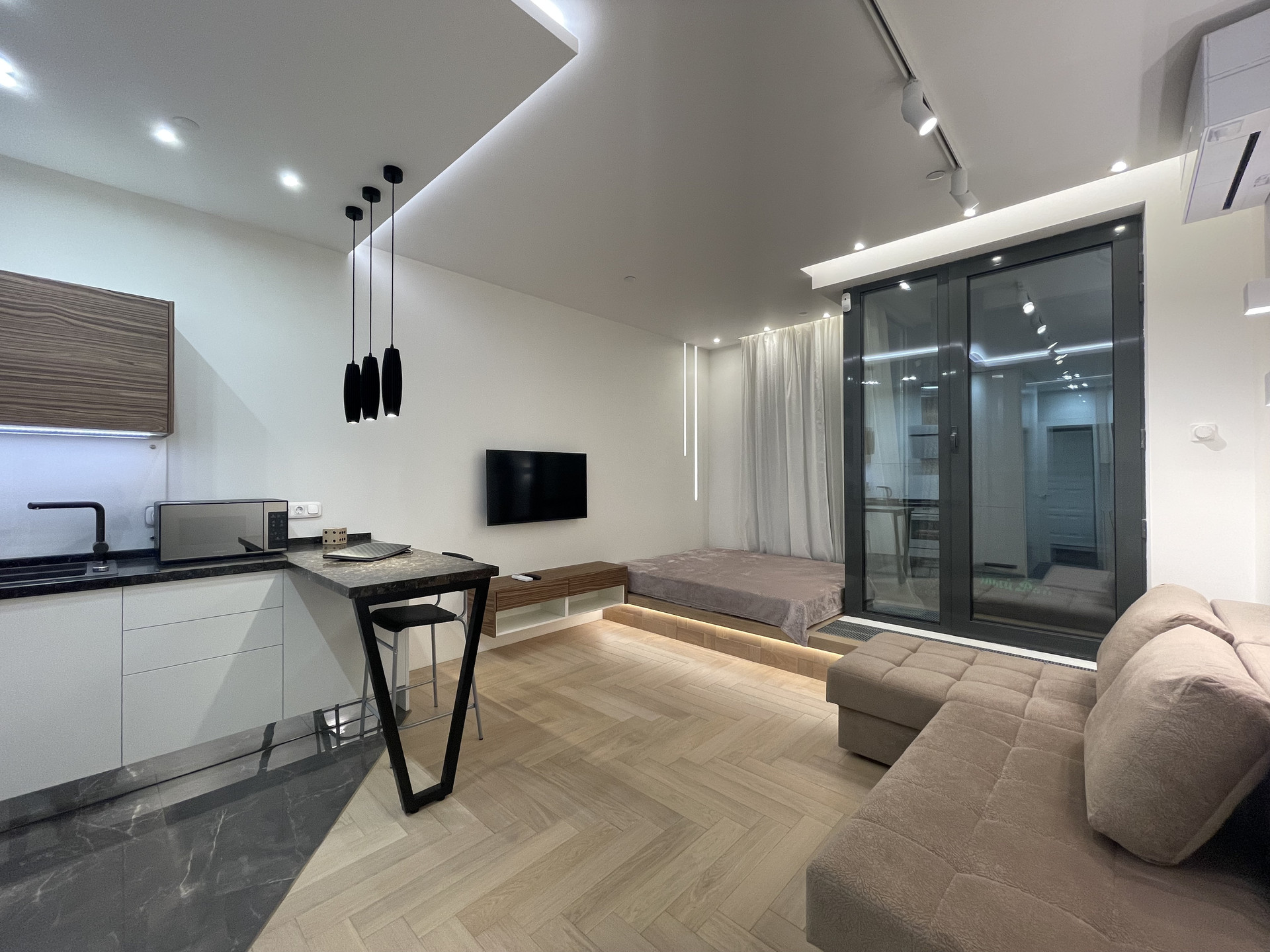 СТИЛЬНАЯ, ОЧЕНЬ УЮТНАЯ квартира после свежего ВЫСОКОКАЧЕСТВЕННОГО ДИЗАЙНЕРСКОГО ремонта - делали для себя. ВСЕ ПРОДУМАНО ДО МЕЛОЧЕЙ. Пол - натуральное дерево - дуб, керамогранит. Высокие потолки 3 м. Шумоизоляция по периметру квартиры (в том числе пол и потолок) - качество как для звукозаписывающей студии. Функциональная планировка - единое пространство: СТУДИЯ с зоной гостиной и зоной спальни (на подиуме), элегантный совмещенный санузел с ванной, утепленный балкон.