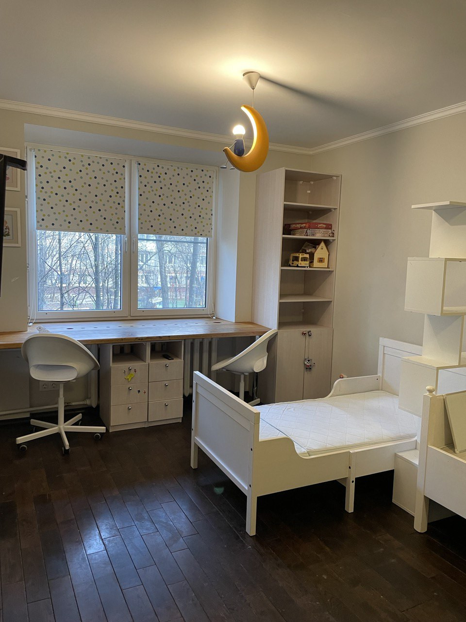 2 комнаты, одна взрослая, одна детская (можно поменять люстры, кровати, будет взрослой)