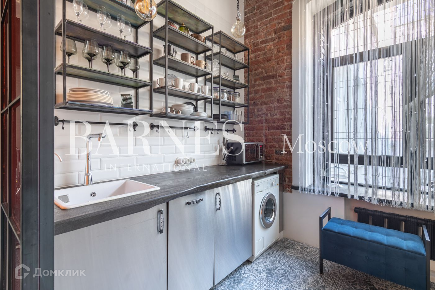 Сохранен оригинальный кирпич и сводчатый полоток, в отделке использованы материалы ведущих мировых производителей. Мебель и техника обладают всем необходимым функционалом и огромной эстетической ценностью.