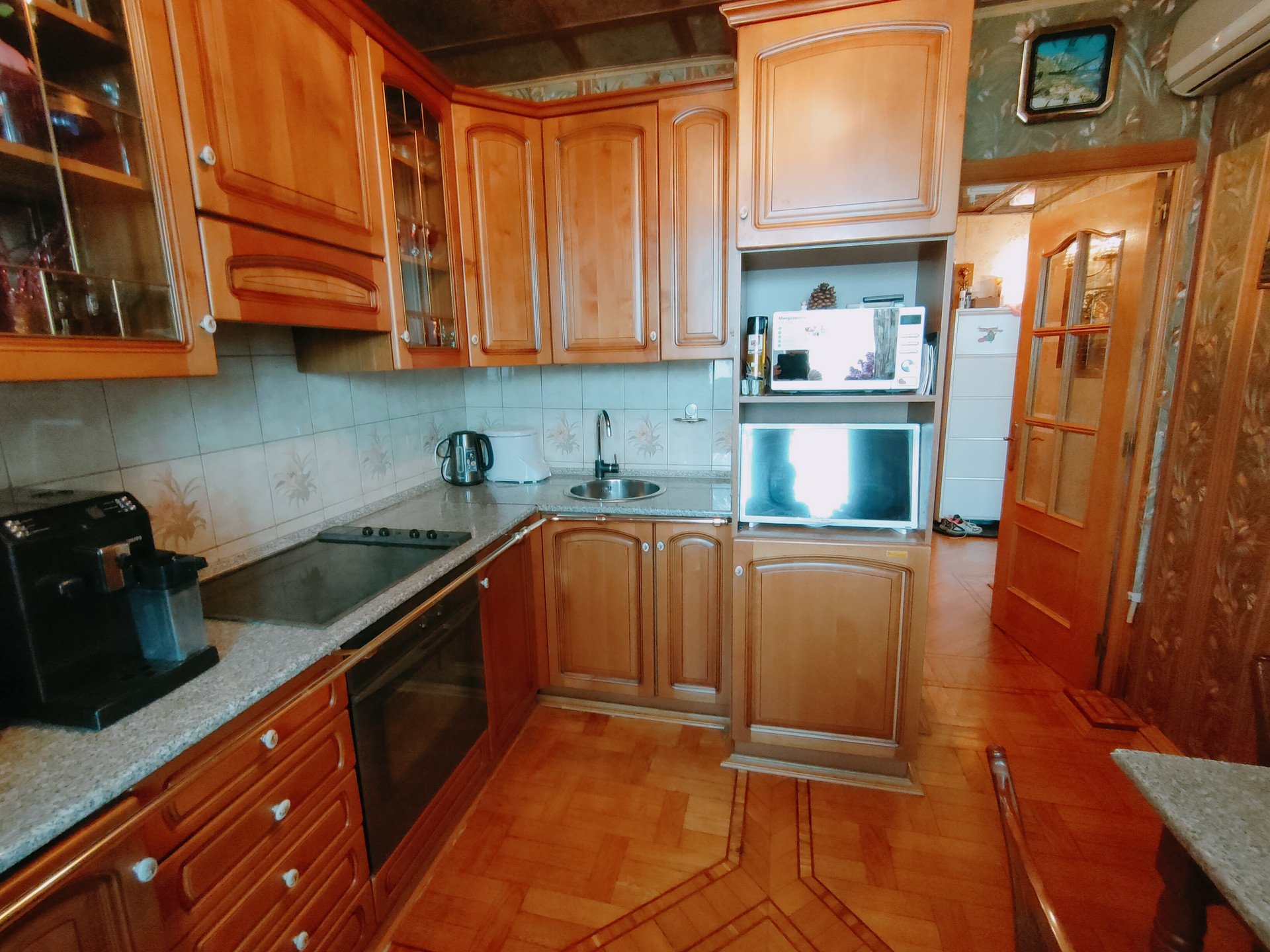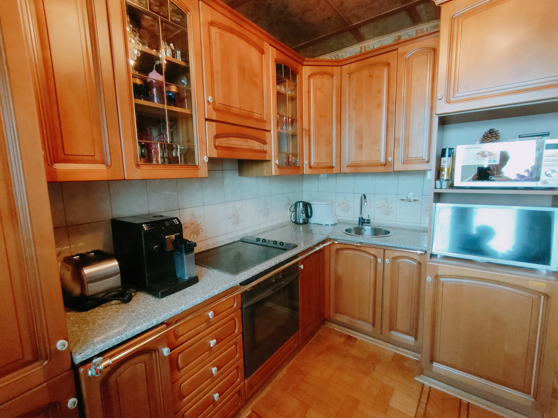Благоустроенная однокомнатная квартира, на длительный срок. Есть все необходимое для удобства быта. 2 остекленных лоджии, с ремонтом. Пол - теплый паркет. В комнате огромный встроенный шкаф для одежды и вещей. Спальное место - кровать. Раскладной стол, TV. В кухне электроплита(стеклокерамика), широкий обеденный стол + стулья, СВЧ, эл.чайник, холодильник. Сан.узел раздельный, полностью. в плитке. В прихожей встроенный шкаф. Интернет проведен.