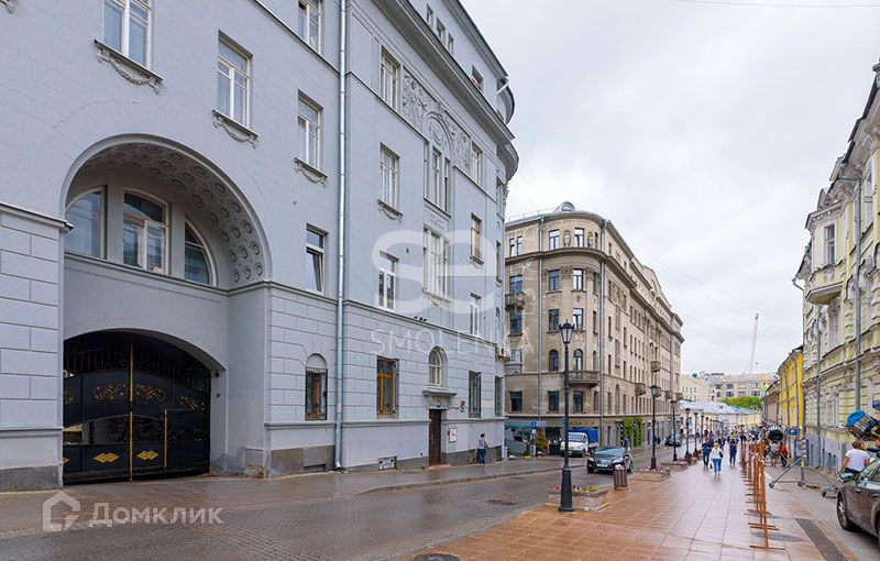 Дом московского купеческого общества, построенный в 1915 году по проекту В. Шервуда на месте старого "Соляного двора". В 1994 году произведен капитальный ремонт. В 2016 установлен новый лифт. Охраняемая наземная парковка в закрытом внутреннем дворе между корпусами за шлагбаумом. Дом расположен в окружении многочисленных памятников истории, культуры и архитектуры, выставочных залов, театров, уютных кафе и ресторанов. Вокруг несколько детских садов, французская школа, супермаркет, два зеленых бульвара.