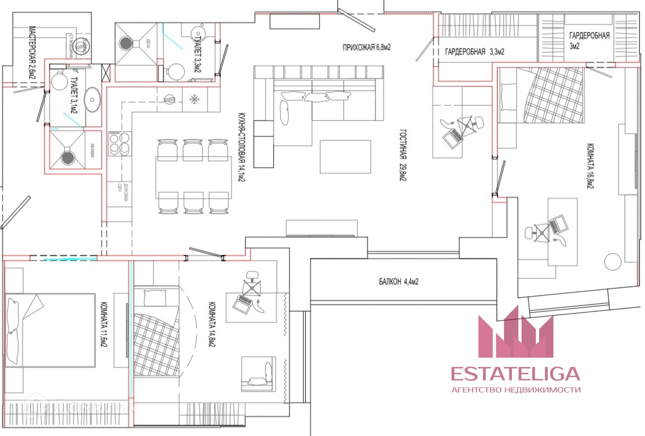 Общая площадь 115 м2