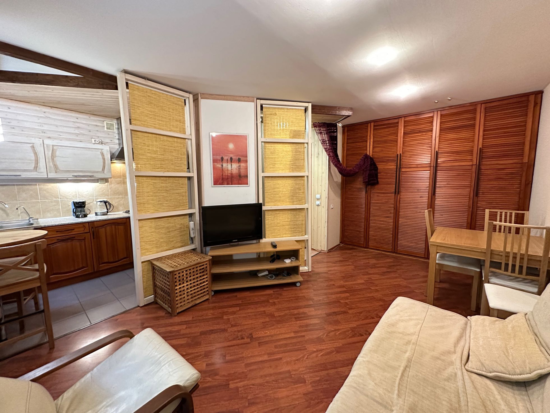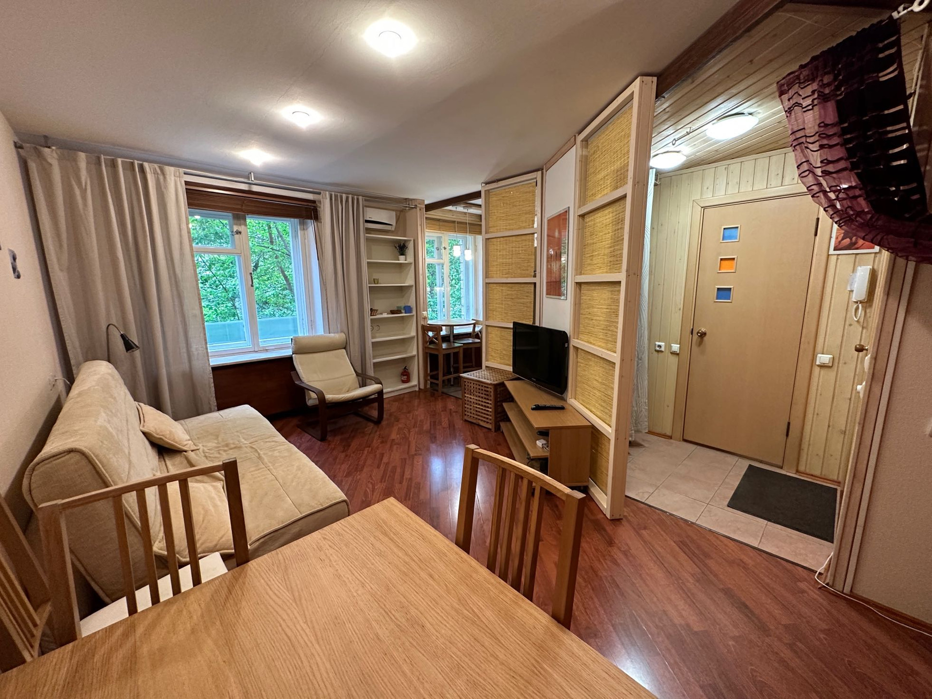 Галина. ПРЯМОЙ ПРЕДСТАВИТЕЛЬ СОБСТВЕННИКА. Предлагается уютная однокомнатная квартира рядом с м.Киевская. Все есть для комфортного проживания: диван раскладывается, есть кондиционер, плита газовая, есть стиральная машина, большой шкаф для хранения вещей. В сан.узле - душ. Все окна во двор, в квартире очень тихо. Парковаться можно во дворе за шлагбаумом.