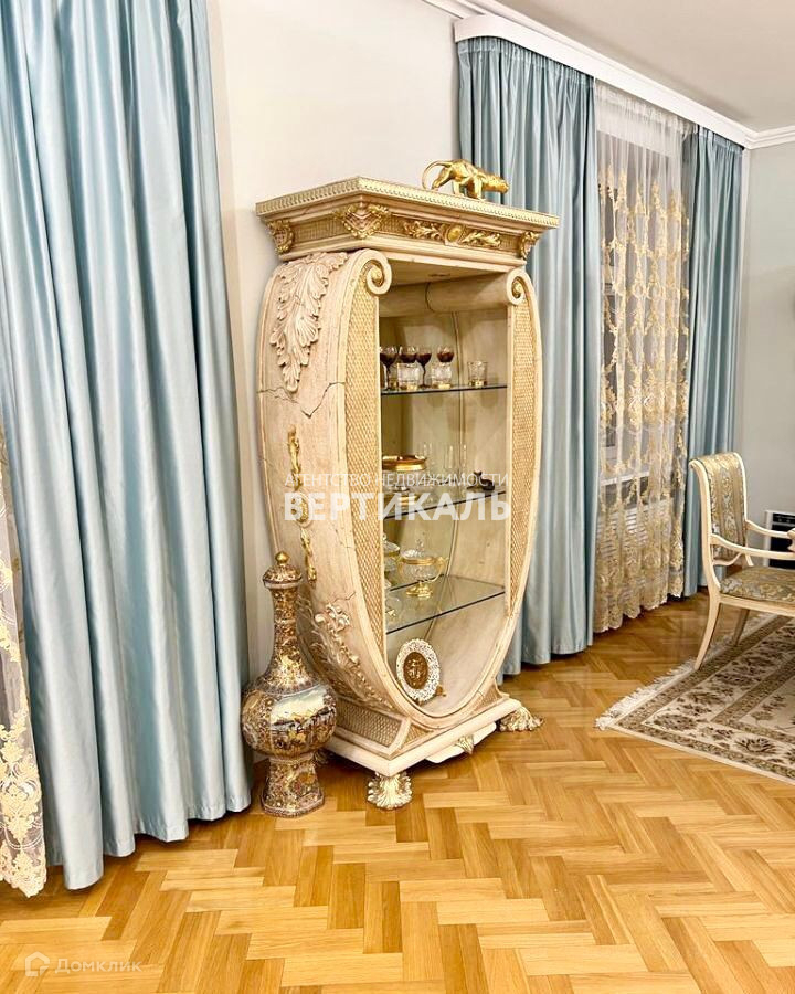 Дизайнерская мебель из Италии выполнена из натурального мрамора и дерева. На полу дубовый паркет, высокие потолки, большие двойные окна блокируют звуки улицы. Две отдельные спальные комнаты выходят в тихий внутренний двор, в одной из спален находится массажное кресло, зал в дворцовом стиле объединен с нарядной столовой и полностью оборудованной современной кухней со всей необходимой бытовой техникой (посудомоечная машина, духовая печь, холодильник, плита). В квартире установлены кондиционеры, комнаты оборудованы специальной вентиляционной системой подачи и очистки воздуха. В квартире два отдельных санузла с джакузи и сауной.
