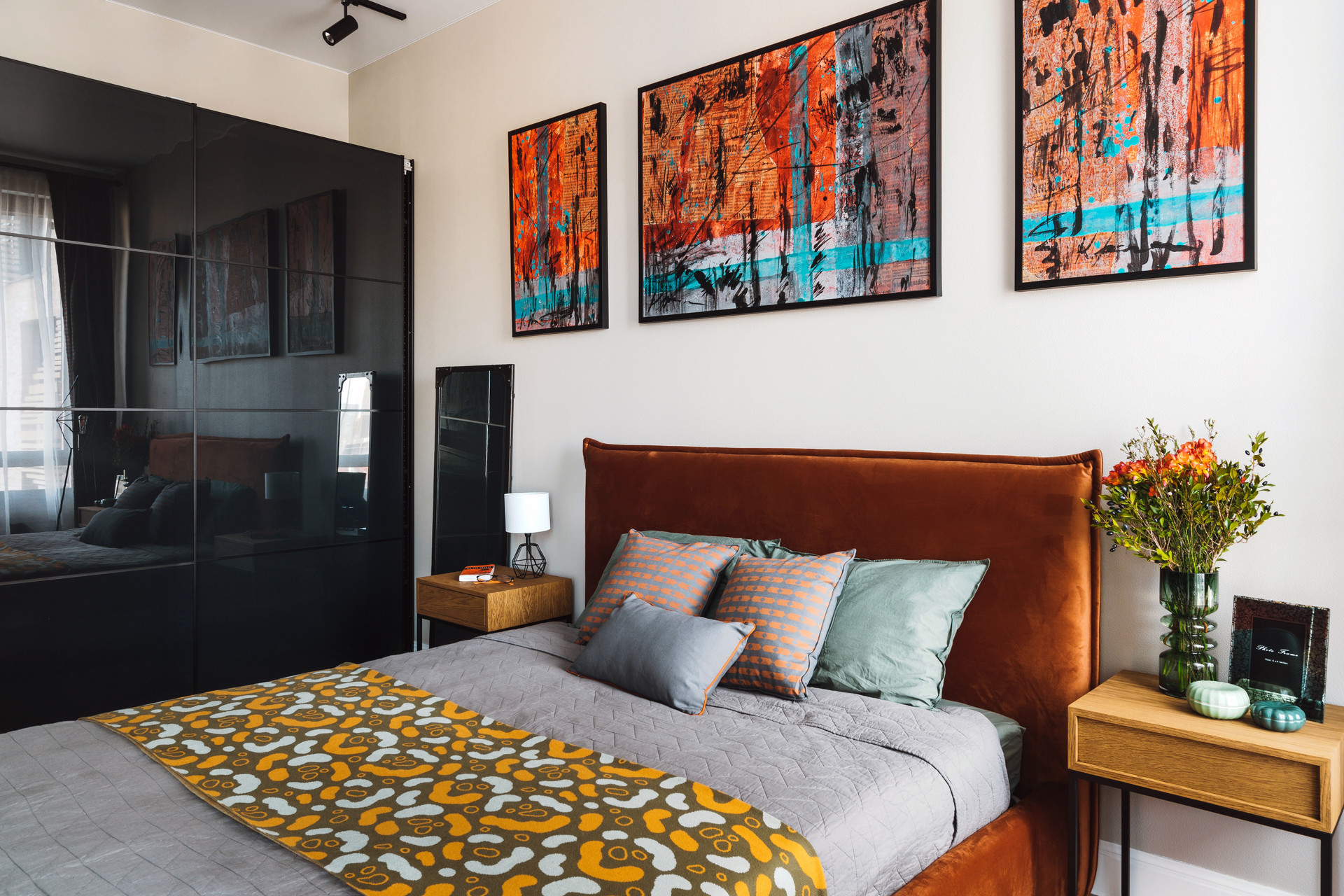 В спальне: удобная двуспальная кровать с новым ортопедическим матрасом, просторный шкаф-купе.