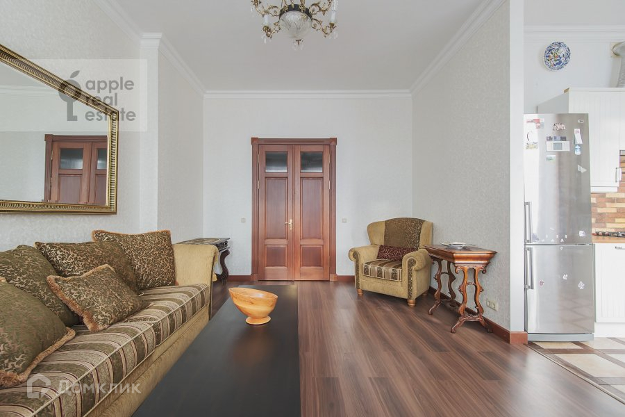 ЖК Дом Наркомфина. Отличная 4-комнатная квартира в сталинском доме. 6 / 7 этаж. Спален: 3, санузлов: 2. Общая площадь: 100 кв.м. Потолки 3 м. Ремонт в классическом стиле. Квартира частично меблирована, обсуждается вывоз или докупка под клиента. Домофон. Охраняемый паркинг. Окна в тихий двор. Есть балкон.  В наличии: посудомоечная машина, холодильник, кондиционер, душевая кабина, ванна, стиральная машина, подогрев полов. Телевизор, высокоскоростной интернет. Можно с детьми. Можно с животными.