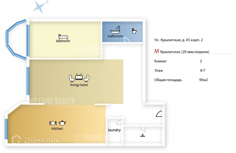 2-комнатная квартира, 87 м2, в аренду на длительный срок в Москве, Крылатская улица, 45к2