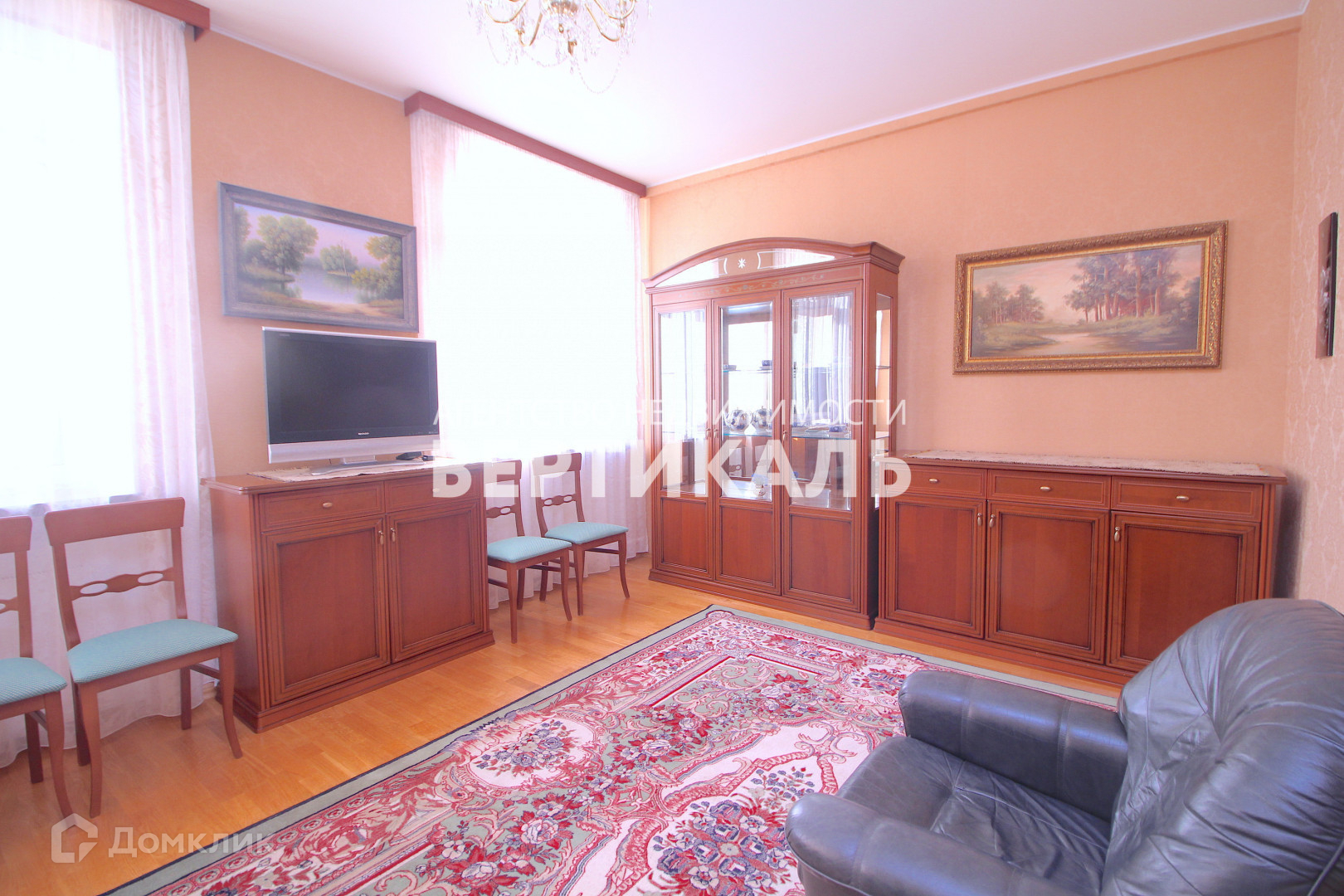 Сталинский дом. Евроремонт, на полу паркетная доска, на стенах обои, окна стеклопакеты с видом во двор и сквер. Итальянская встроенная кухня - вся бытовая техника включая посудомоечную машину в наличии.