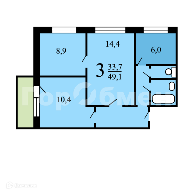 Общая площадь 52 м2