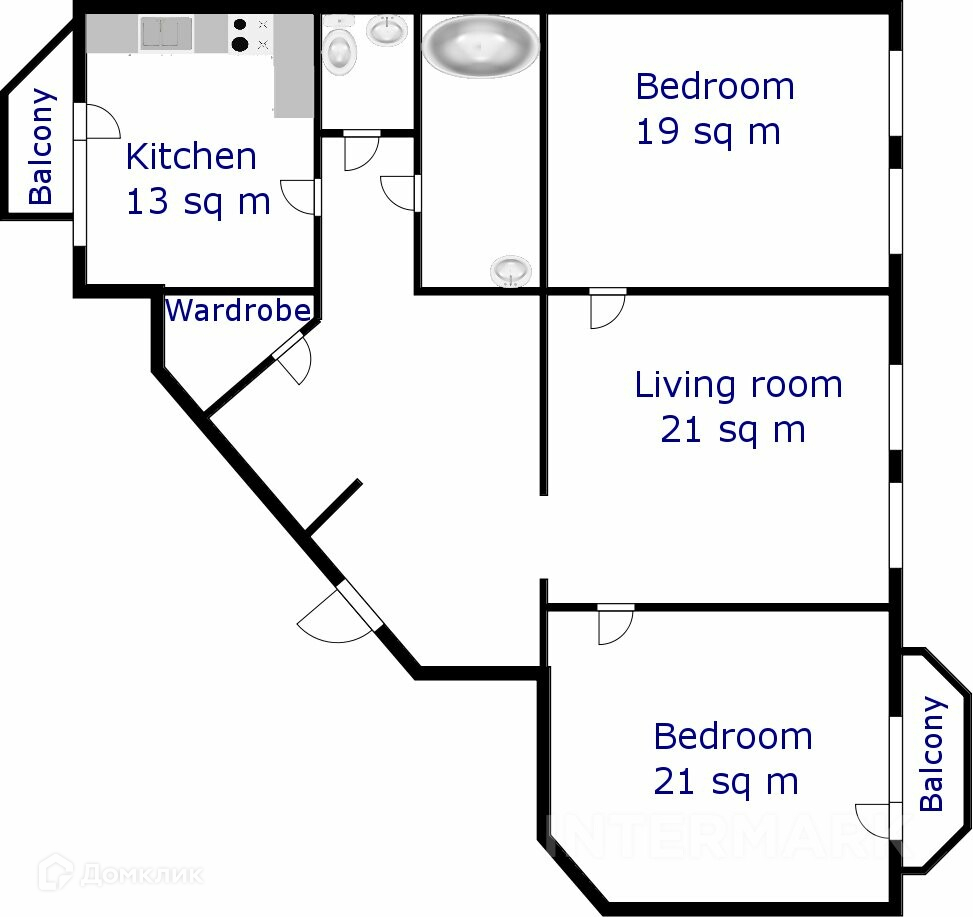 Жилая площадь 61 м2