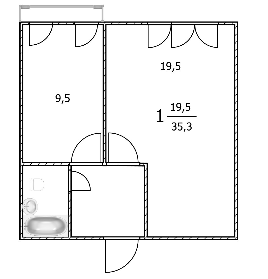 Общая площадь 35.3 м2