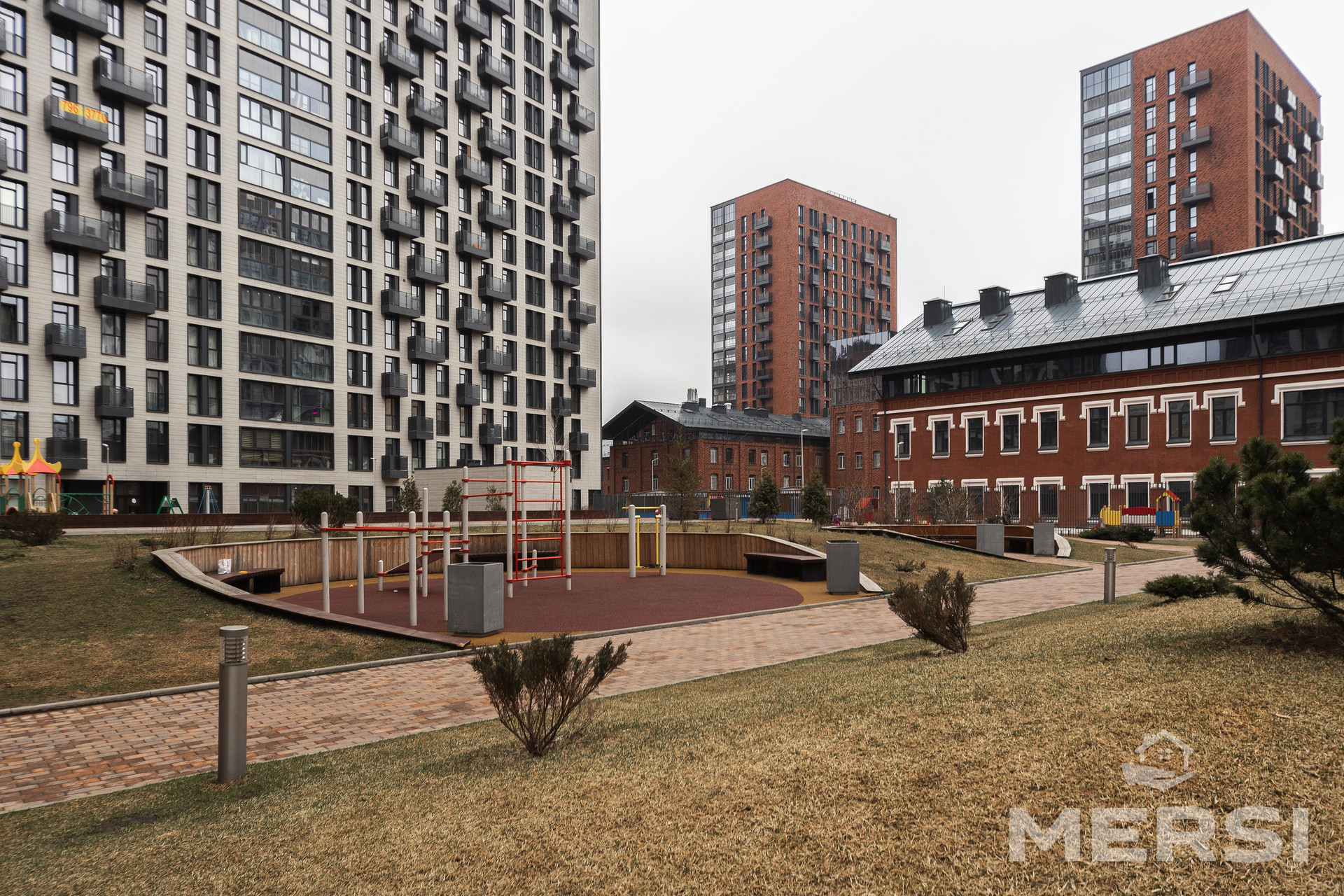 Развитая инфраструктура ЖК - фитнес-клуб с бассейном, множество кафе, магазинов, салонов-красоты, пекарни. В ЖК просторная прогулочная территория с местами для отдыха, оборудованных фонтанами, тренажерами для занятий спортом и детскими площадками.