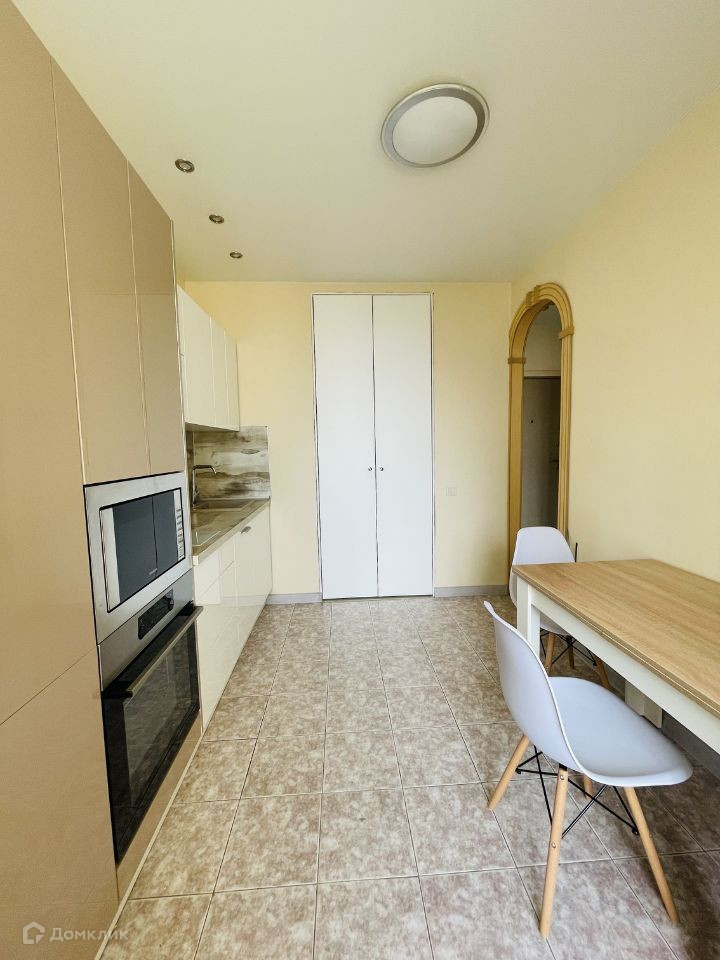 В квартире сделан ремонт, на кухне установлена современная встраиваемая бытовая техника. В комнате скрытая двуспальная кровать с диваном, шкаф, место для работы, установлен кондиционер.
