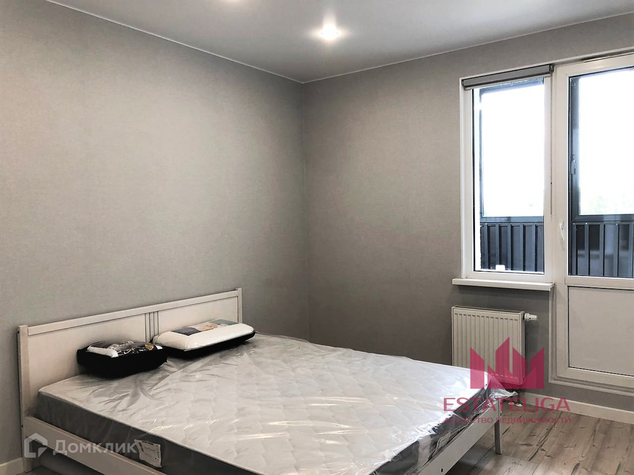 В комнате, переходящей в лоджию, имеется большая двуспальная кровать.