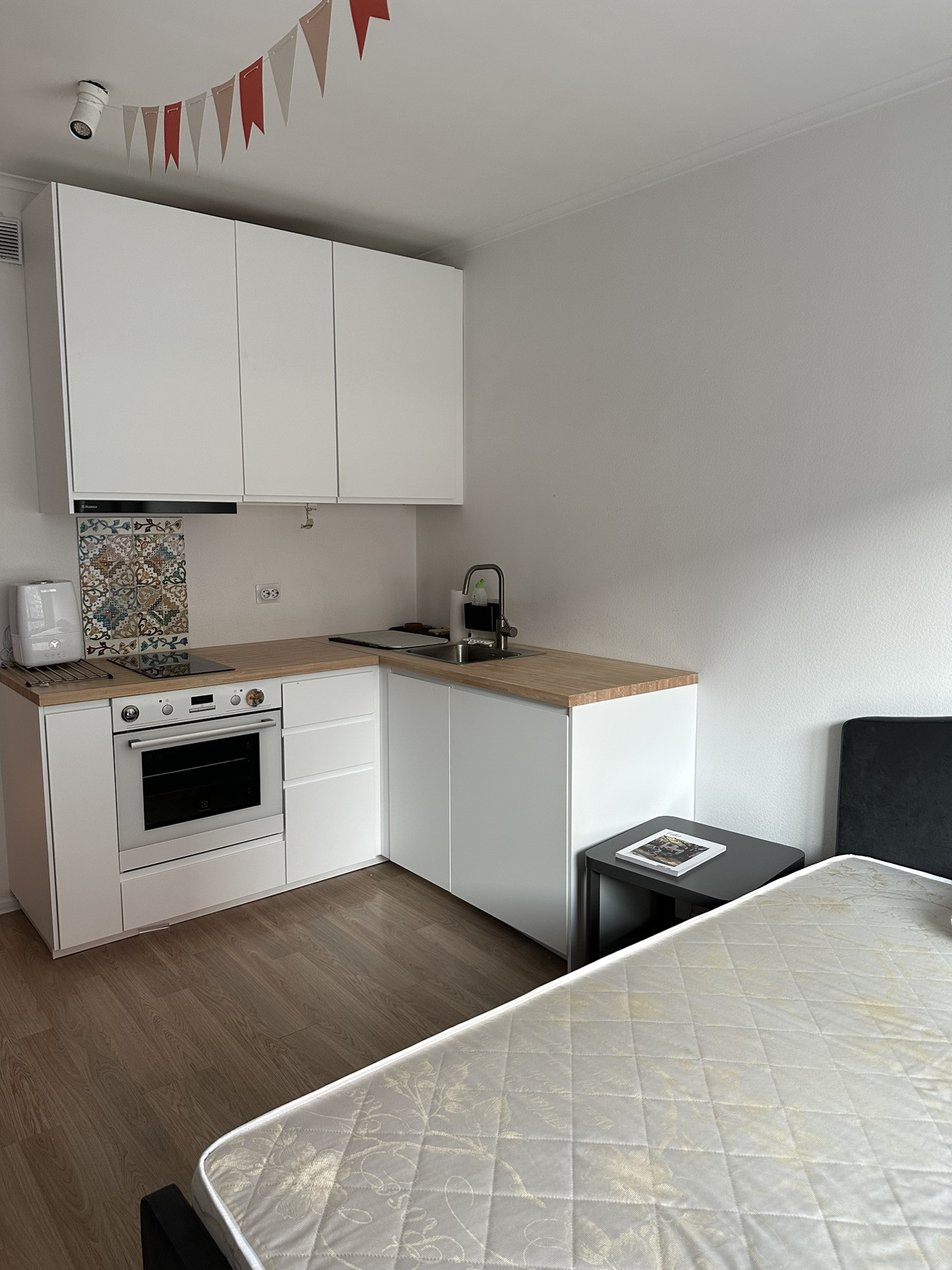 Уютная студия рядом с м. Говорово в ЖК «Мещерский лес». В квартире есть все необходимое для жизни–кухня (небольшой но вместительный встроенный холодильник, плита, духовка), кровать, большой шкаф для вещей, стеллаж, стол и 2 стула, в ванной есть стиральная машинка, также в квартире есть кондиционер.