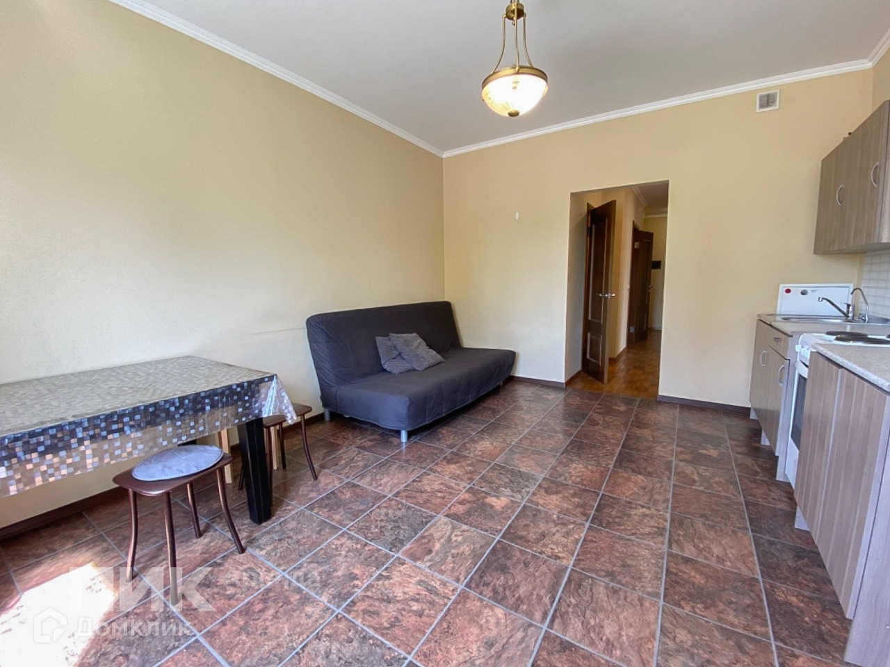 Сдаётся просторная 1-комнатная квартира с хорошим ремонтом и совмещённым санузлом. Квартира оборудована кухонным гарнитуром, мебелью и бытовой техникой. Есть холодильник, стиральная машина и плита. Дополнительную мебель и технику можно приобрести в счёт арендной платы. Полы – ламинат и плитка. Окна выходят в благоустроенный двор.
