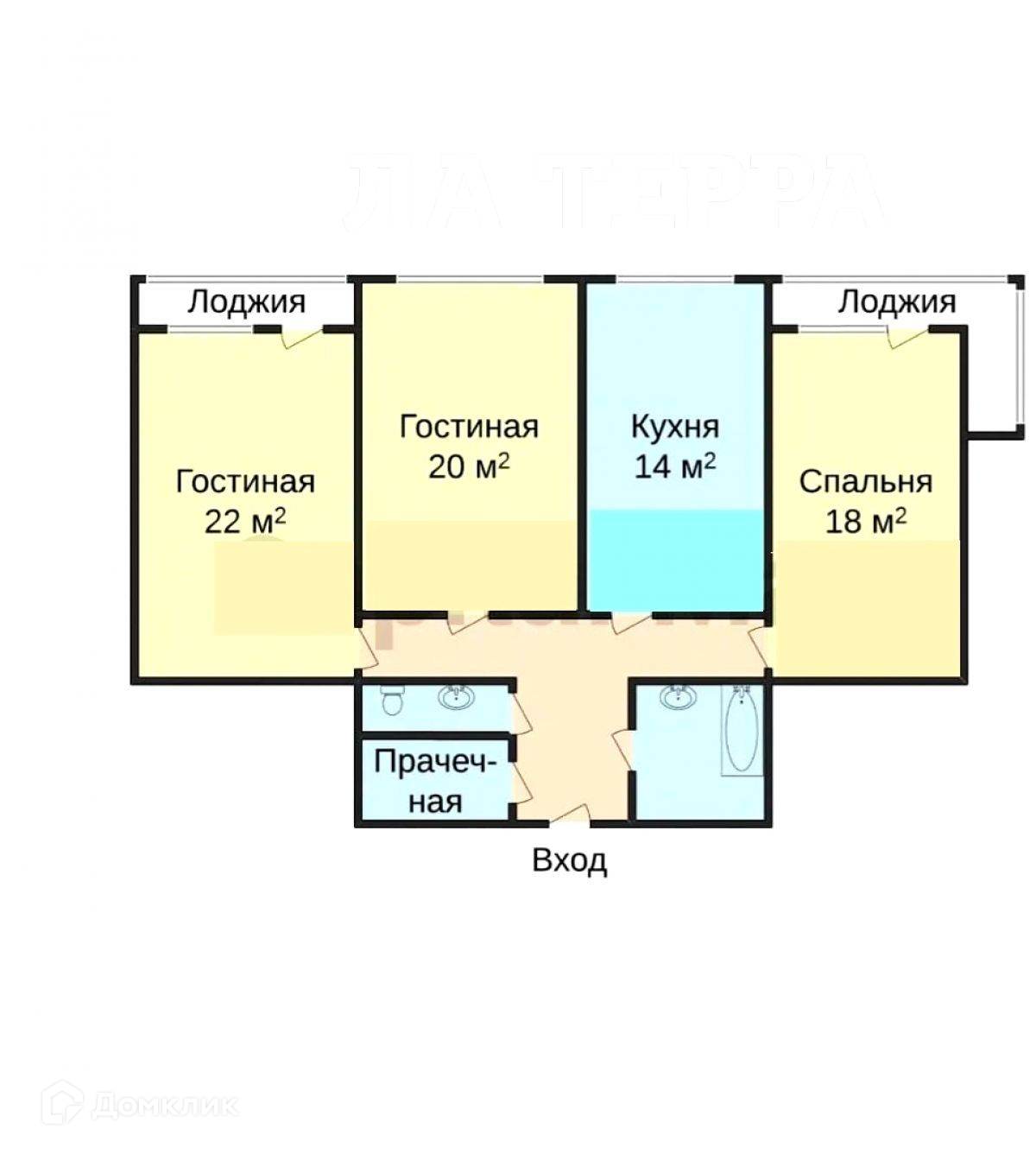 Комнаты изолированы ( 22+20+18 кв.м.) + большая кухня (14 м.кв.).