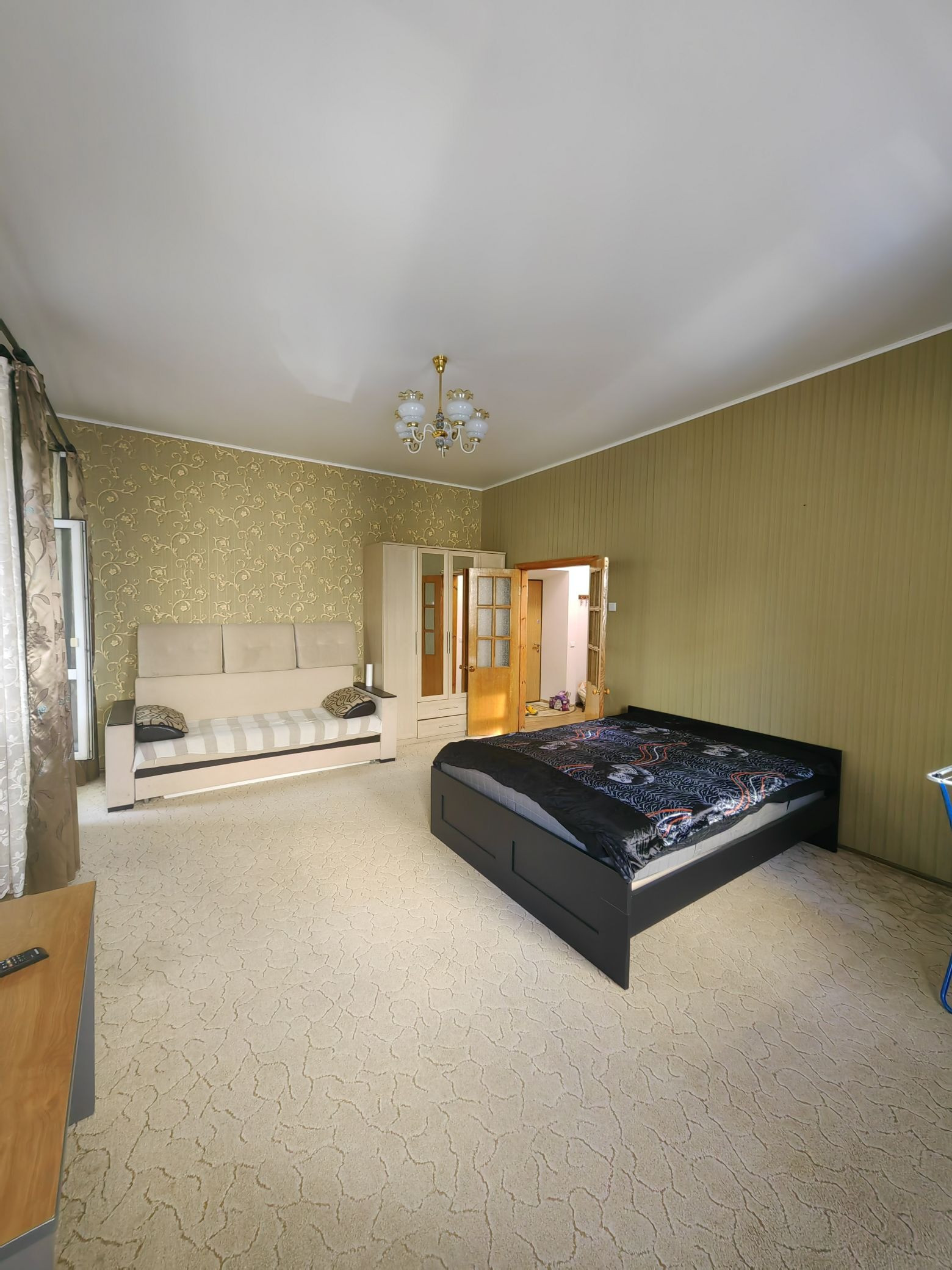Квартира меблированная, имеется кровать, диван, 2 шкафа, письменный стол, телевизор, стиральная машина автомат, газовая печь, электрическая духовка, обеденный стол и стулья, холодильник и др. кухонная мебель, пылесос, гладильная доска.