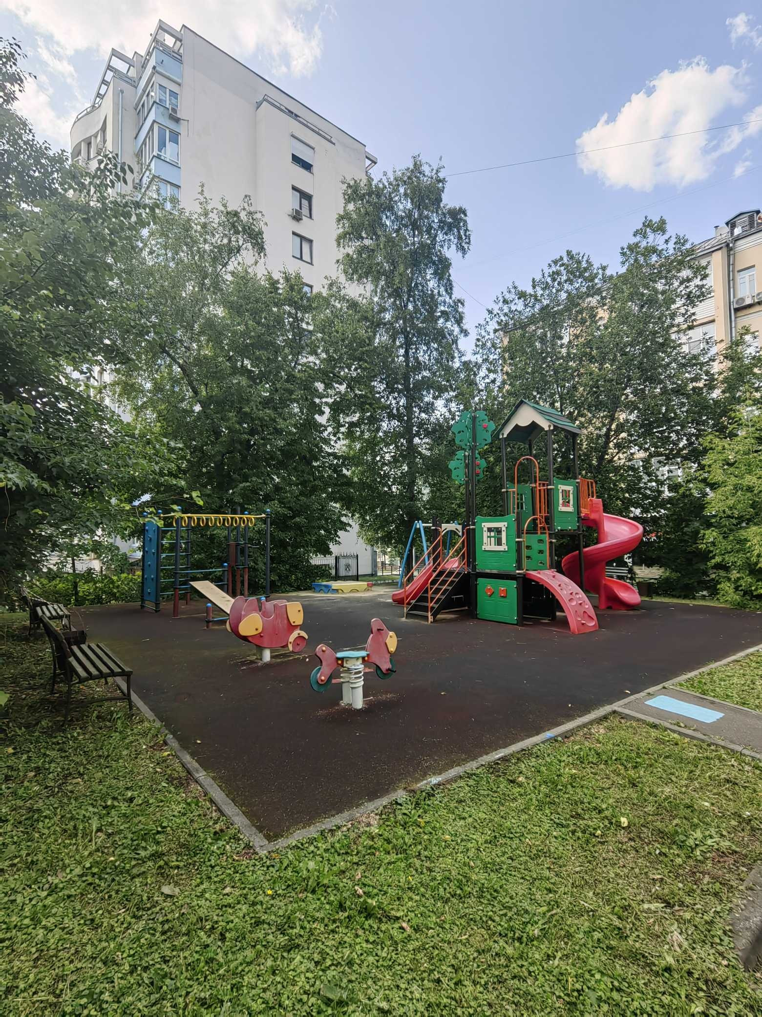 Также во дворе расположена детская площадка, по соседству садик и школа.
