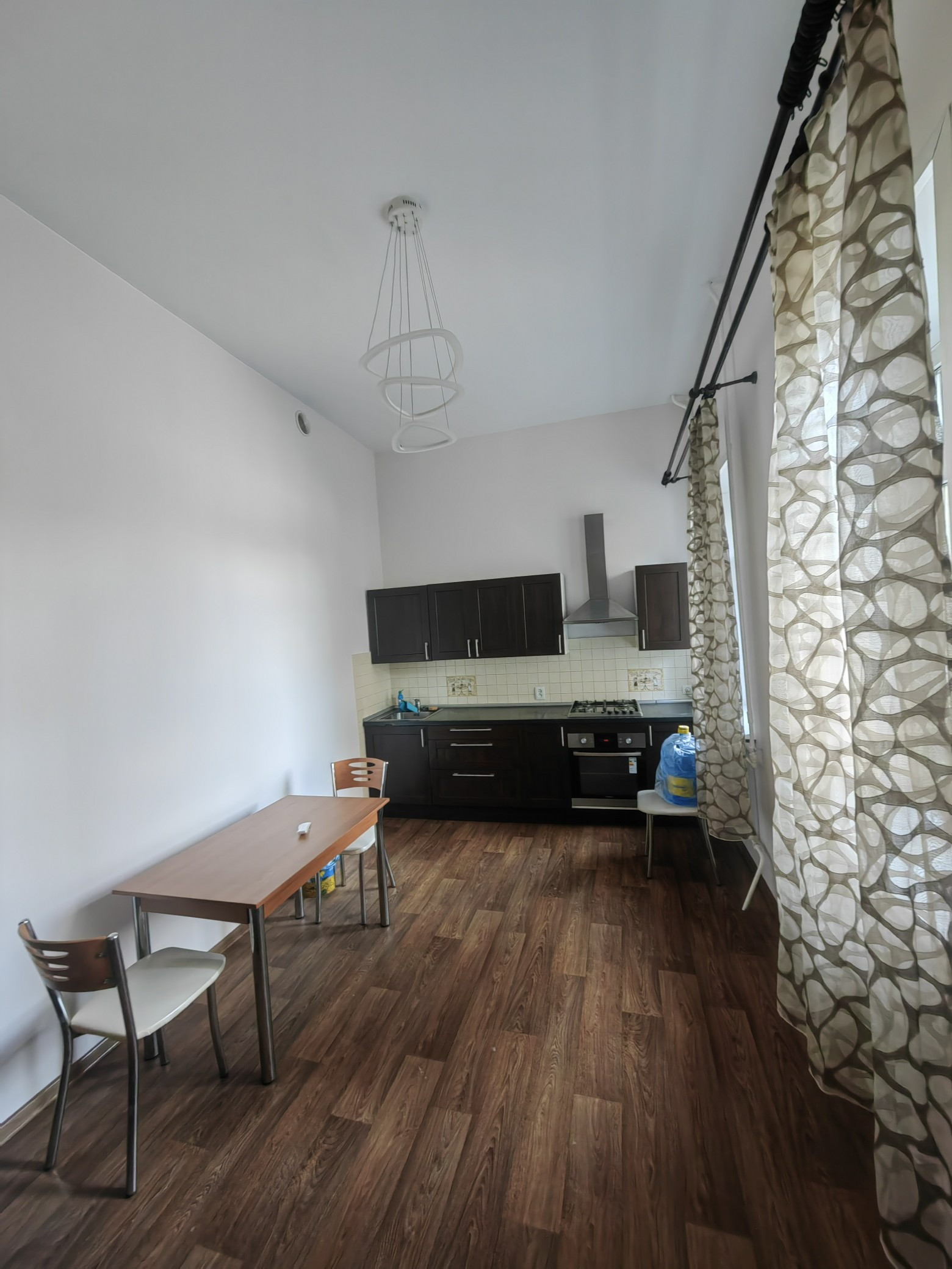 На кухне, поскольку она очень просторная, при желании можно поставить диван.