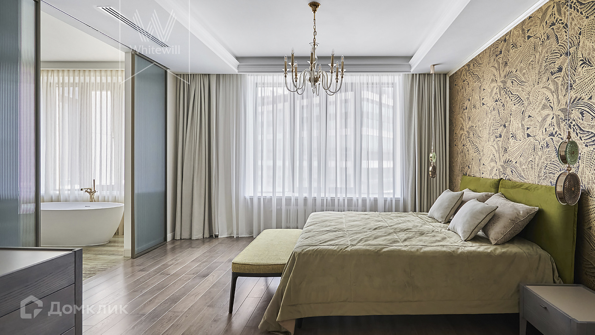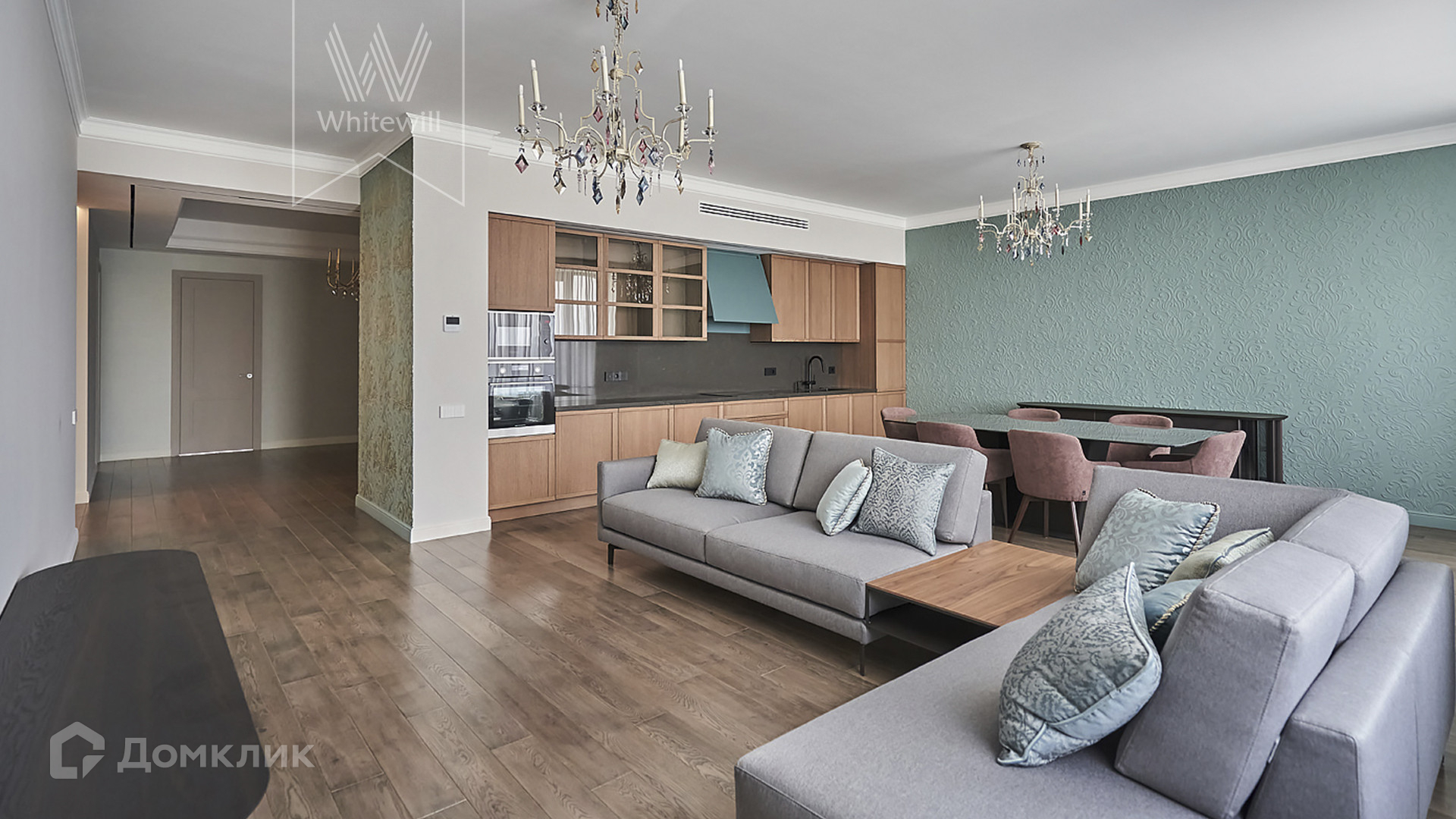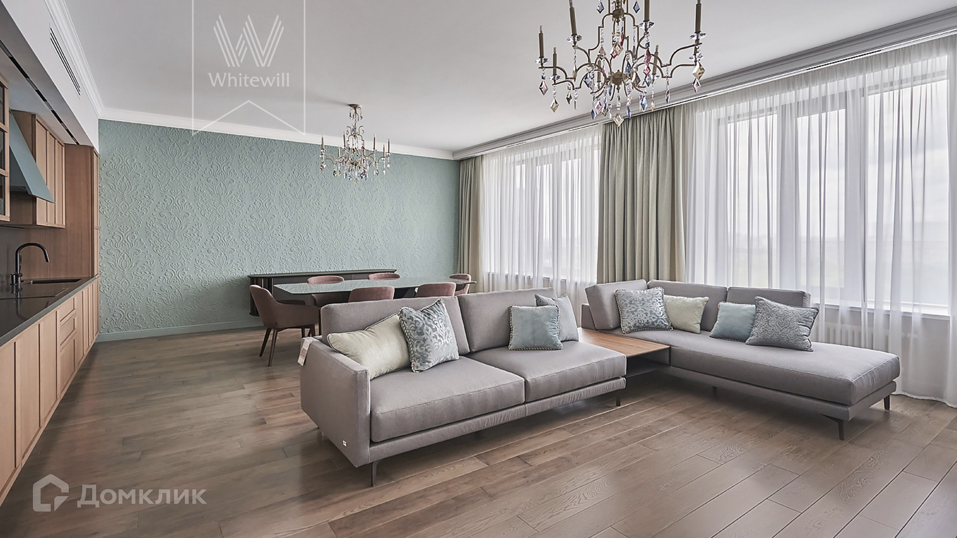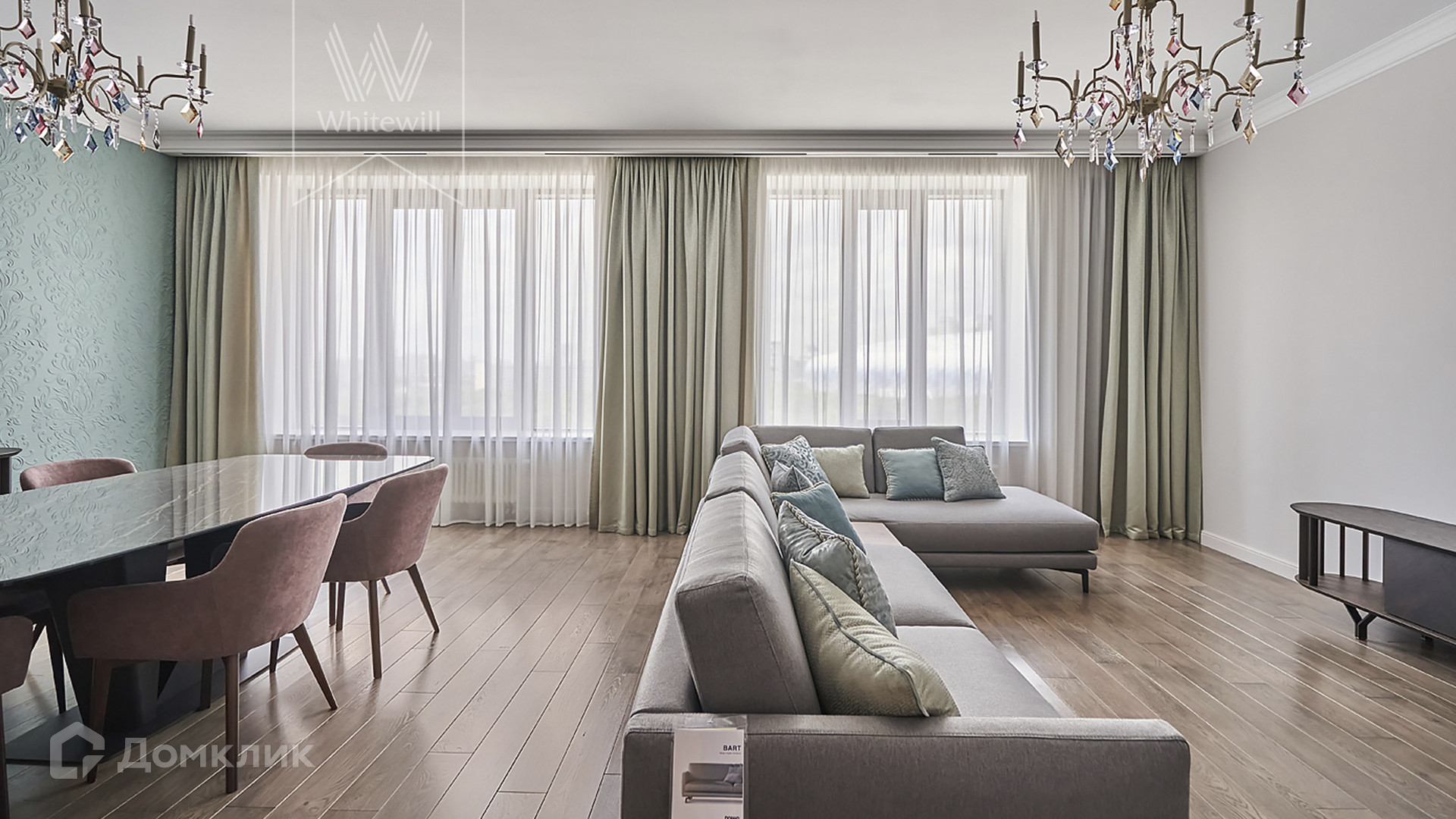 ID 1 502. С коллегами работаем 50/50. Просторные апартаменты с 3-мя спальнями площадью 176 м² находятся на 12 этаже в комплексе премиум-класса «ВТБ Арена Парк». Внутри выполнен авторский ремонт в стиле современной классики. Интерьер оформлен в теплых тонах, украшен дизайнерскими итальянскими люстрами и подсветкой потолков. В отделке использованы натуральные материалы — дикий шелк на стенах, стол из камня. В апартаментах проведена система кондиционирования с функцией очистки воздуха с дополнительными фильтрами.
