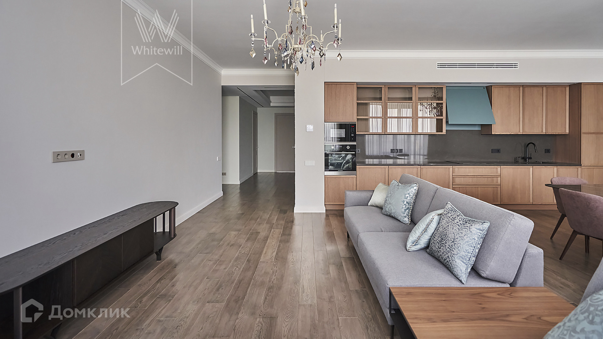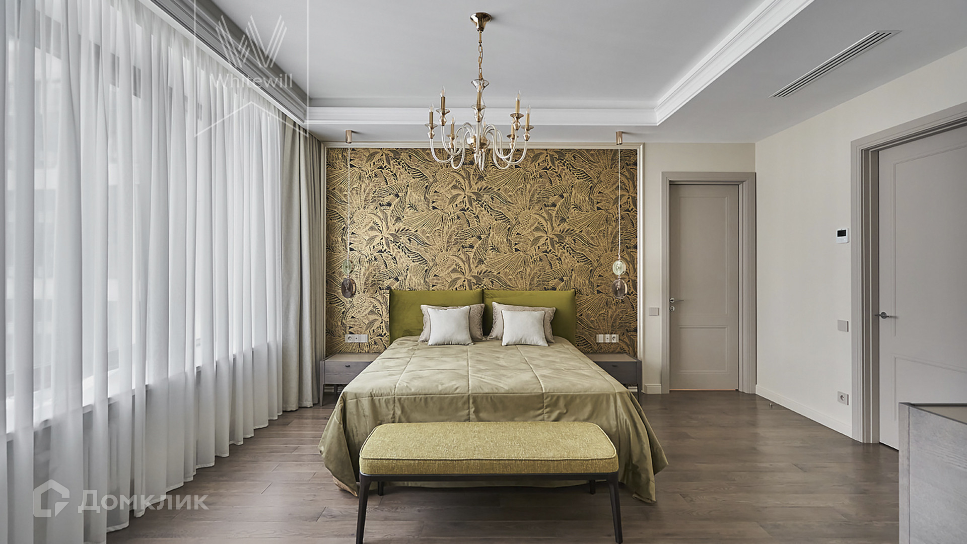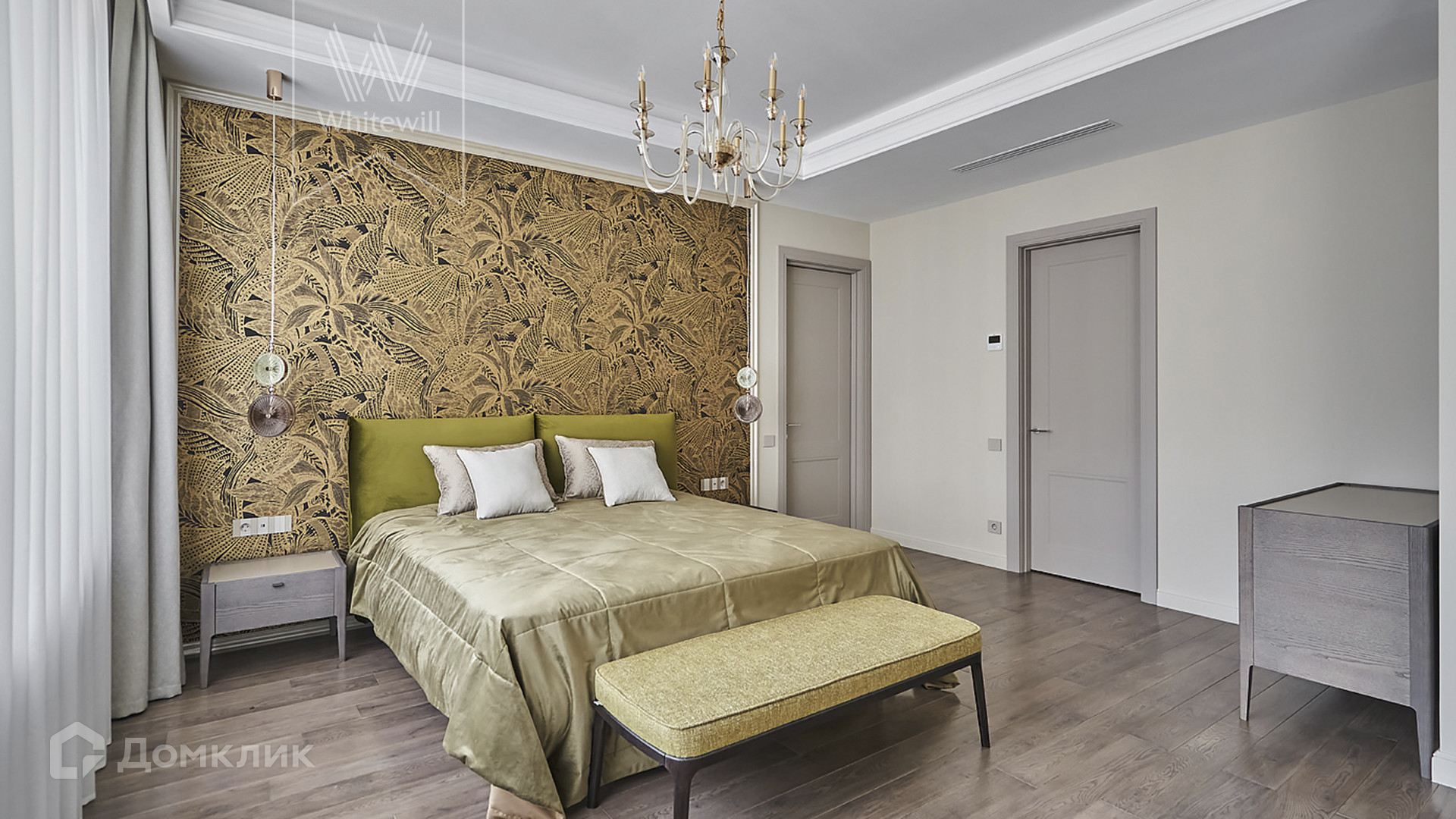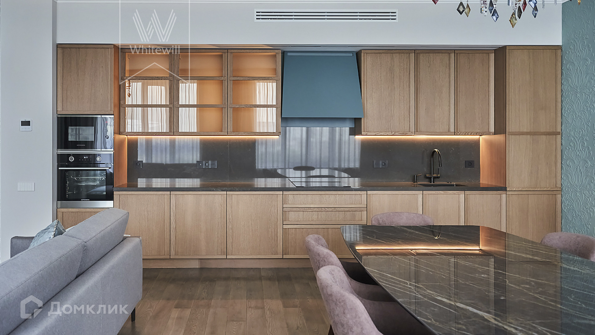 ID 1 502. С коллегами работаем 50/50. Просторные апартаменты с 3-мя спальнями площадью 176 м² находятся на 12 этаже в комплексе премиум-класса «ВТБ Арена Парк». Внутри выполнен авторский ремонт в стиле современной классики. Интерьер оформлен в теплых тонах, украшен дизайнерскими итальянскими люстрами и подсветкой потолков. В отделке использованы натуральные материалы — дикий шелк на стенах, стол из камня. В апартаментах проведена система кондиционирования с функцией очистки воздуха с дополнительными фильтрами.