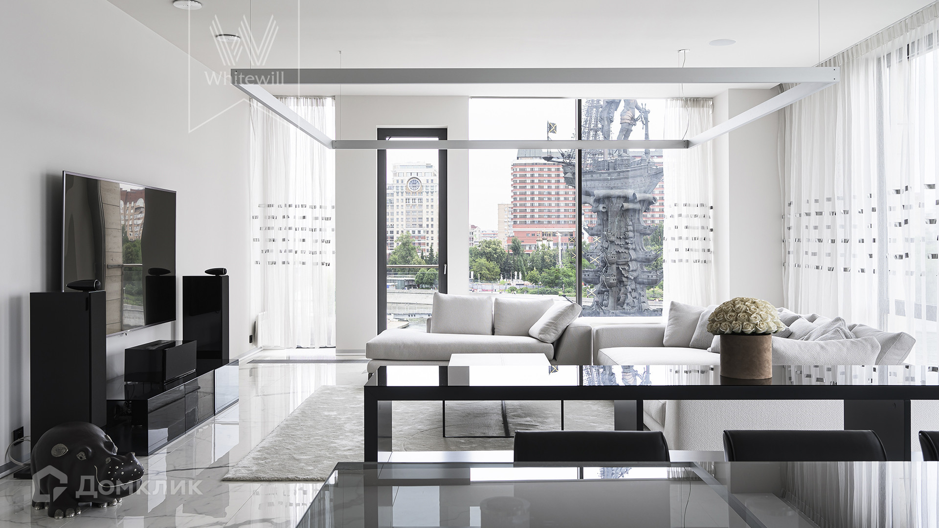 ID 1 633. С коллегами работаем 50/50. Видовая квартира в комплексе делюкс-класса Barkli Plaza на берегу Москвы-реки в самом центре Москвы. Выполнен премиальный современный ремонт в лаконичных светлых тонах. Окна ориентированы на 3 стороны света, открываются живописные виды на реку, памятник Петру I, парк Музеон.
