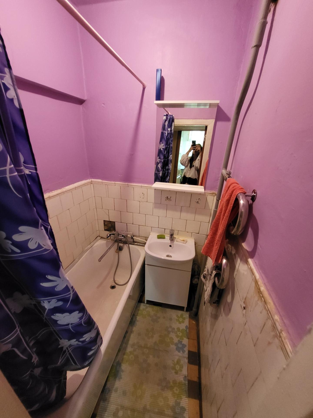Сан/узел раздельный: Ванна, стиральная машинка автомат, зеркало с зоной для хранения.