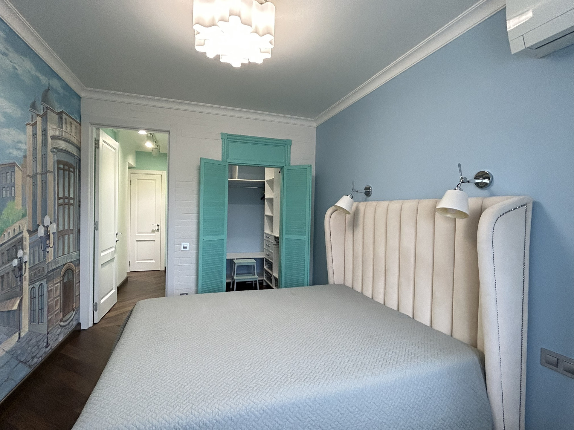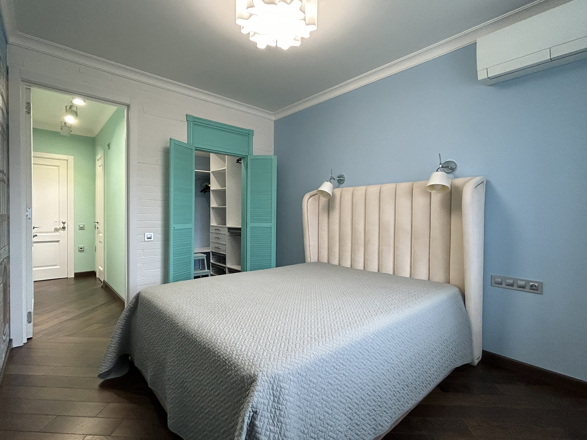 -Уютная спальня с гардеробной комнатой;