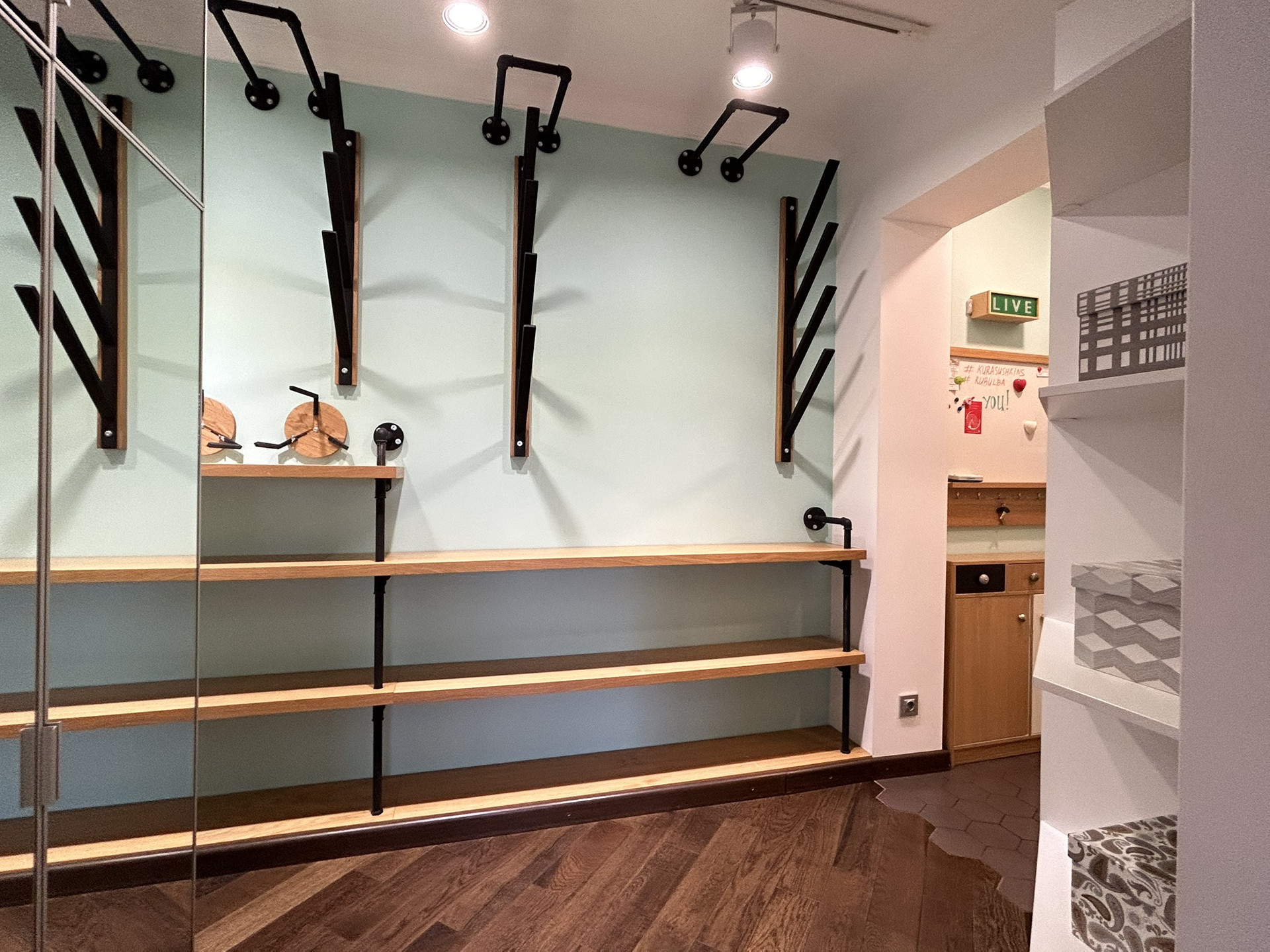 инвентаря в коридоре: серфов, сноубордов,