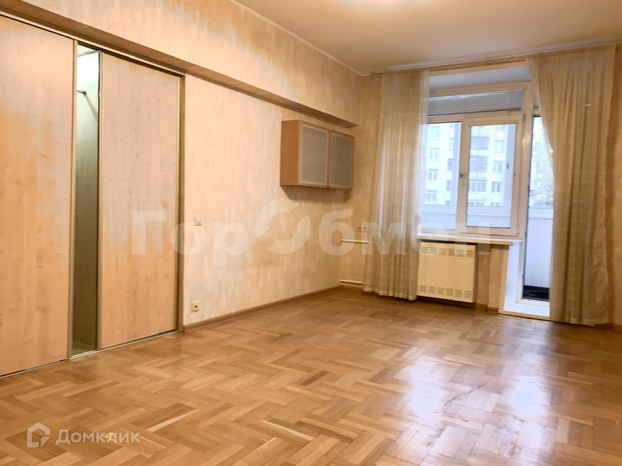 Комната просторная со встроенным шкафом-купе. Пол-дубовый паркет.