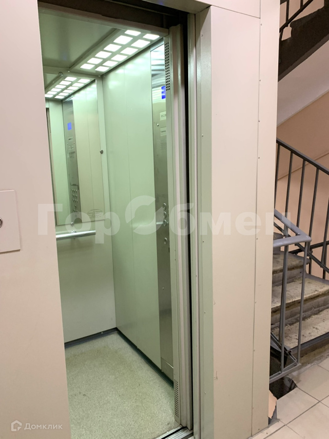 Приятный подъезд с домофоном и современным лифтом.