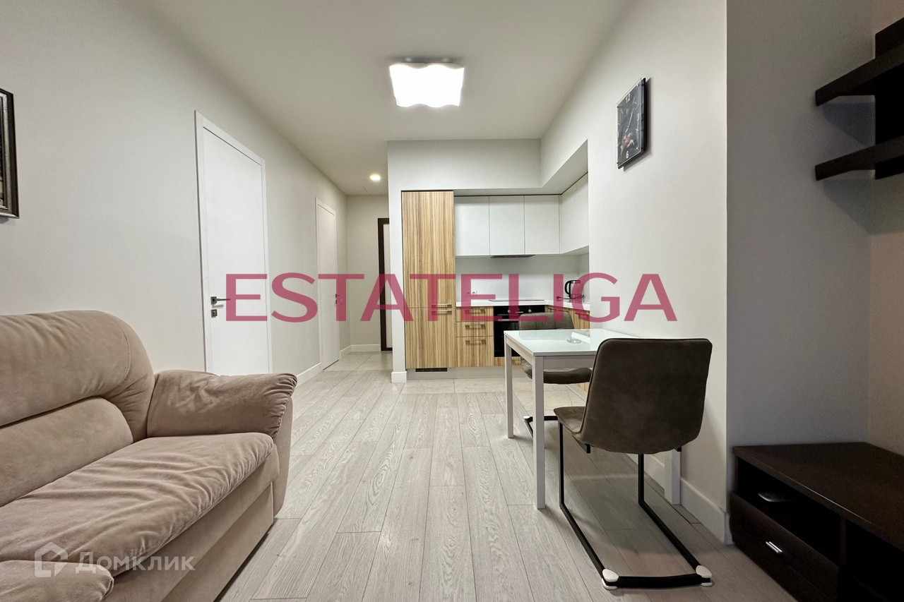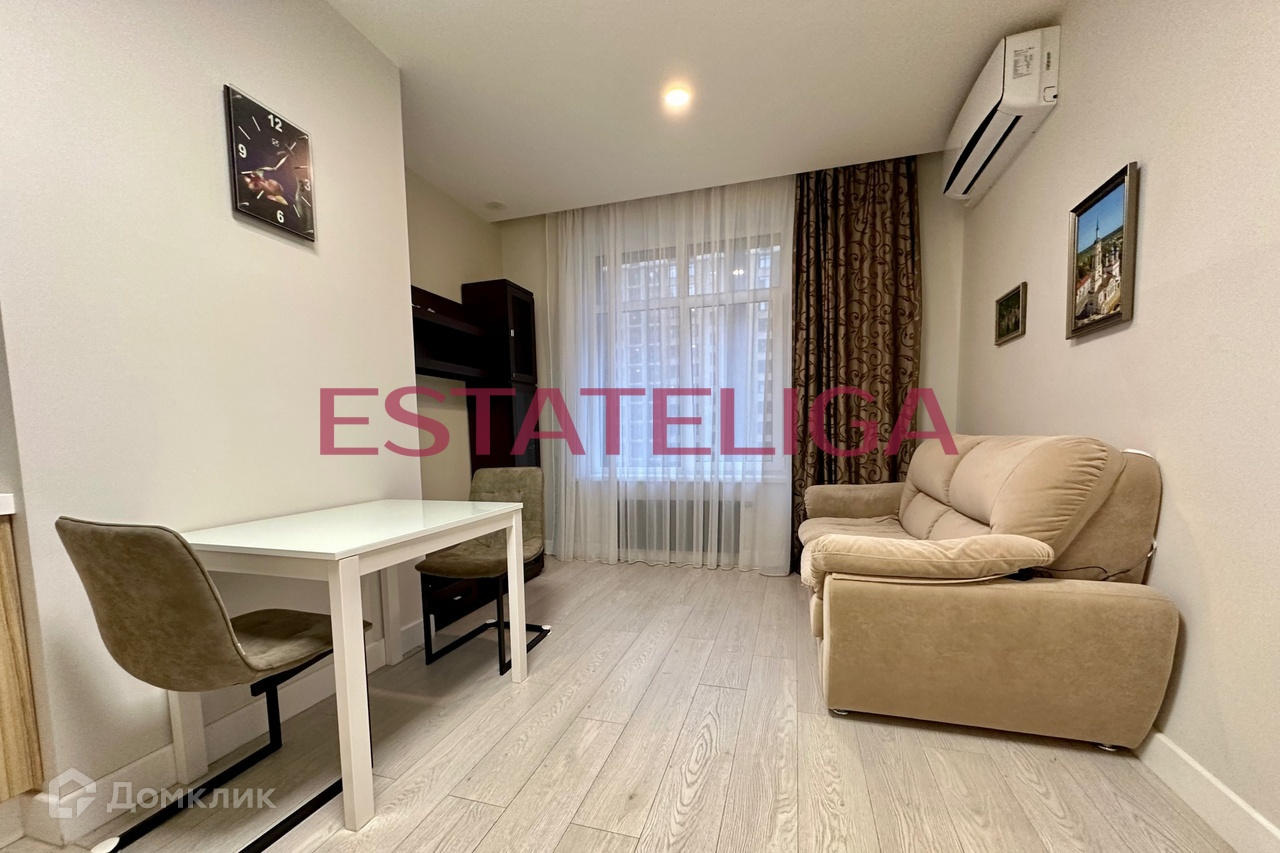 Функциональная планировка апартамента: кухня-гостиная, изолированная спальня, совмещенный санузел с ванной, просторная прихожая с гардеробной. Окна выходят во двор. Теплые полы, кондиционер в каждой комнате. Много мест для хранения. Апартамент в идеальном состоянии.