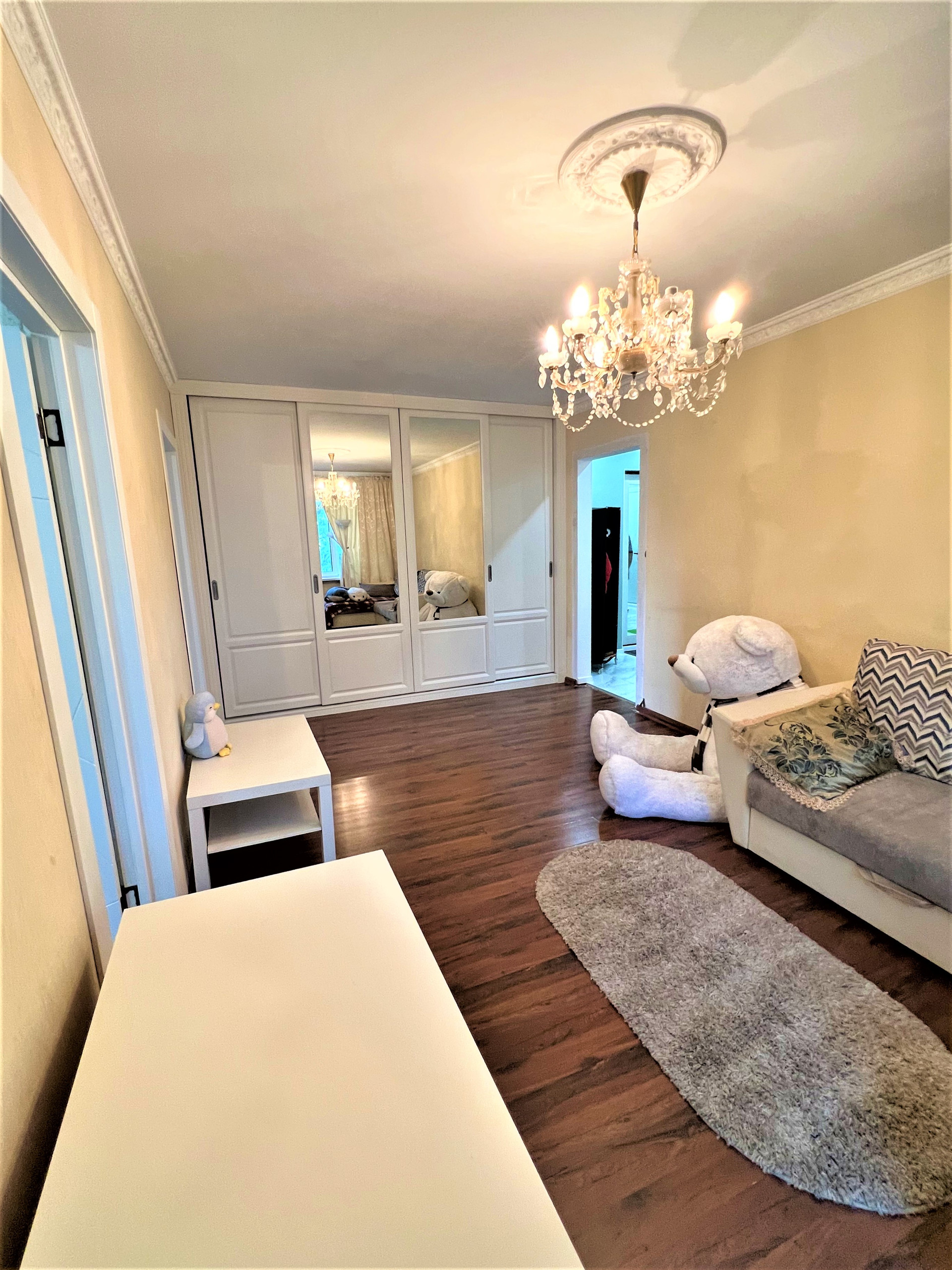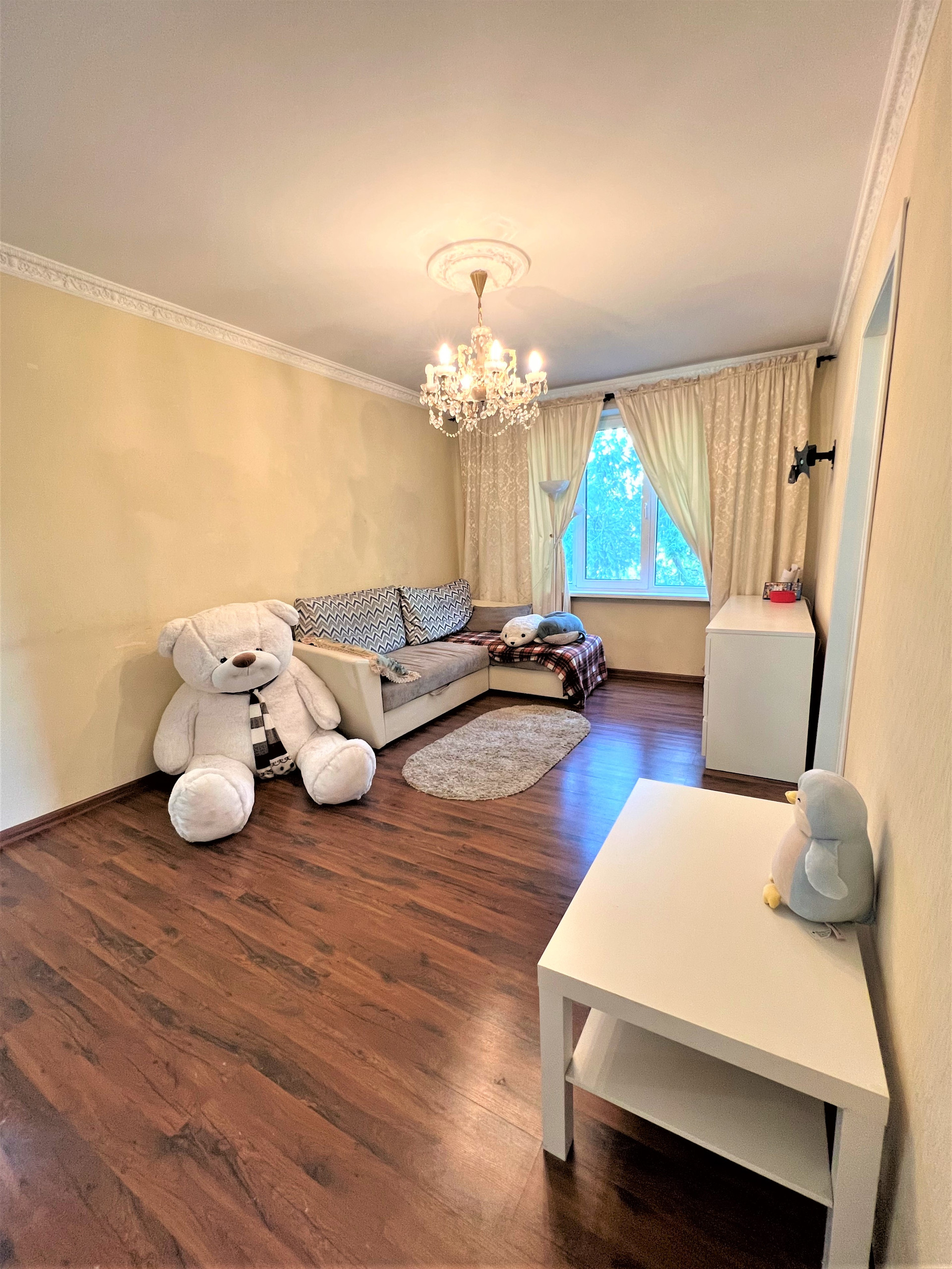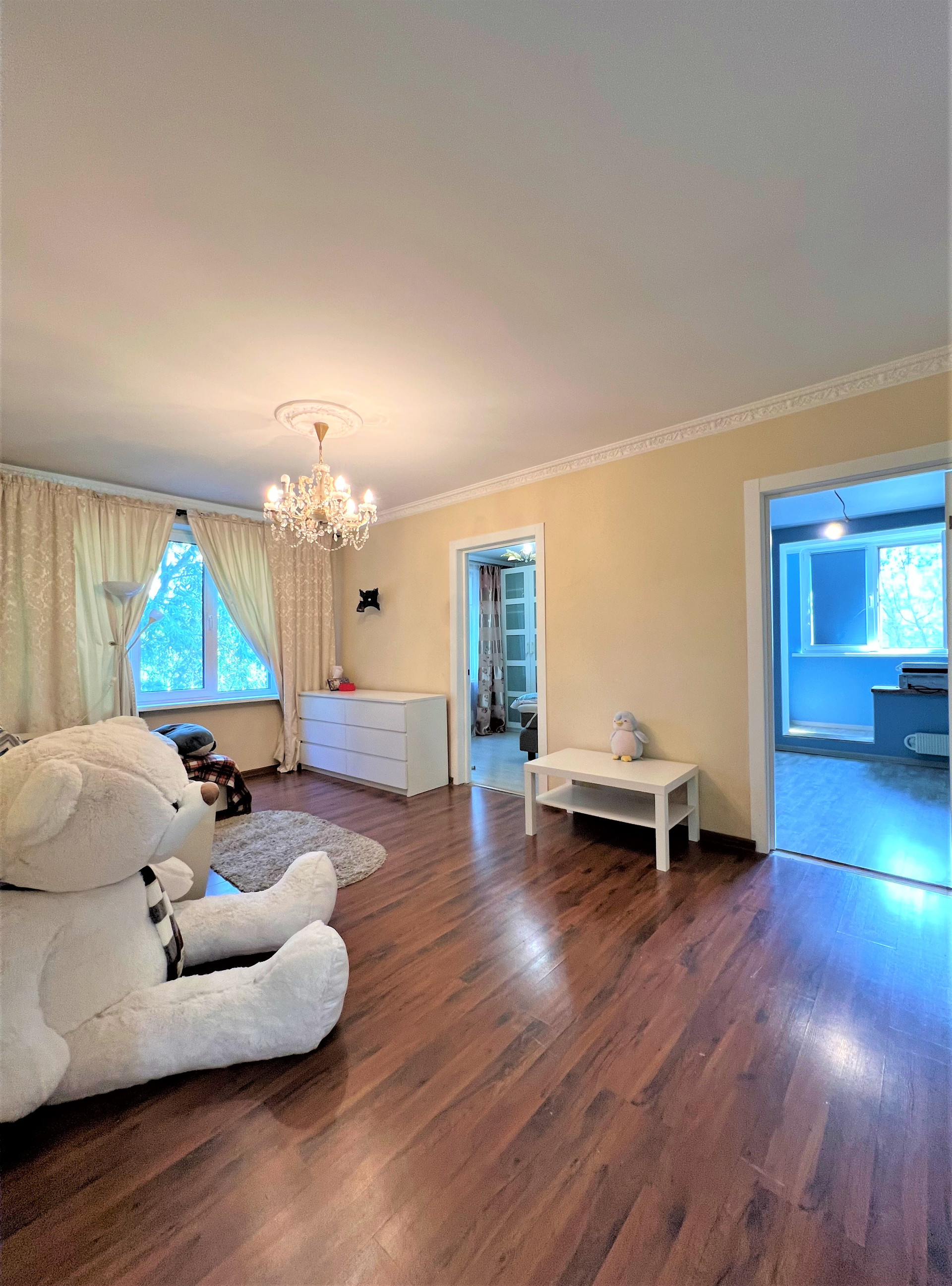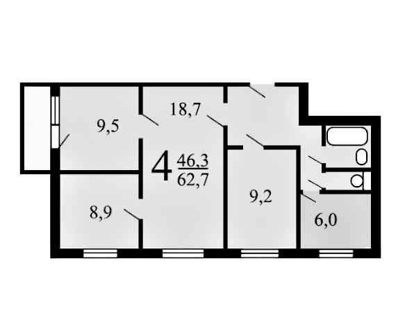 Квартира полностью укомплектована всей необходимой для комфортного проживания мебелью и техникой. Общая площадь: 62.9 м², Жилая площадь: 46.3 м², Площадь кухни: 6.0 м², Комнаты: 18.7 м², 9.5 м², 9.2 м². , 8.9 м²..