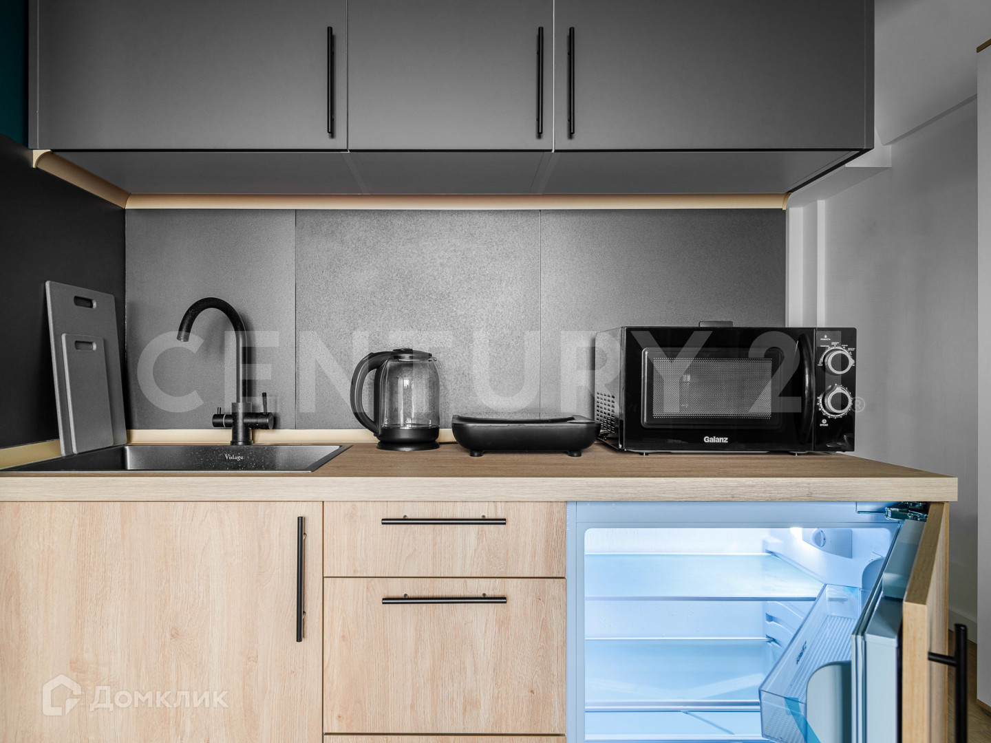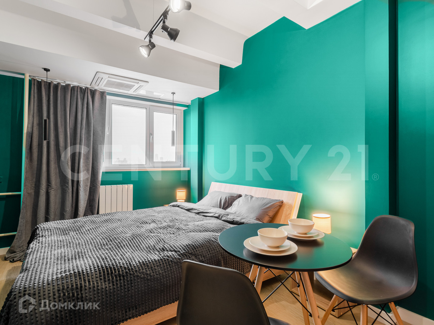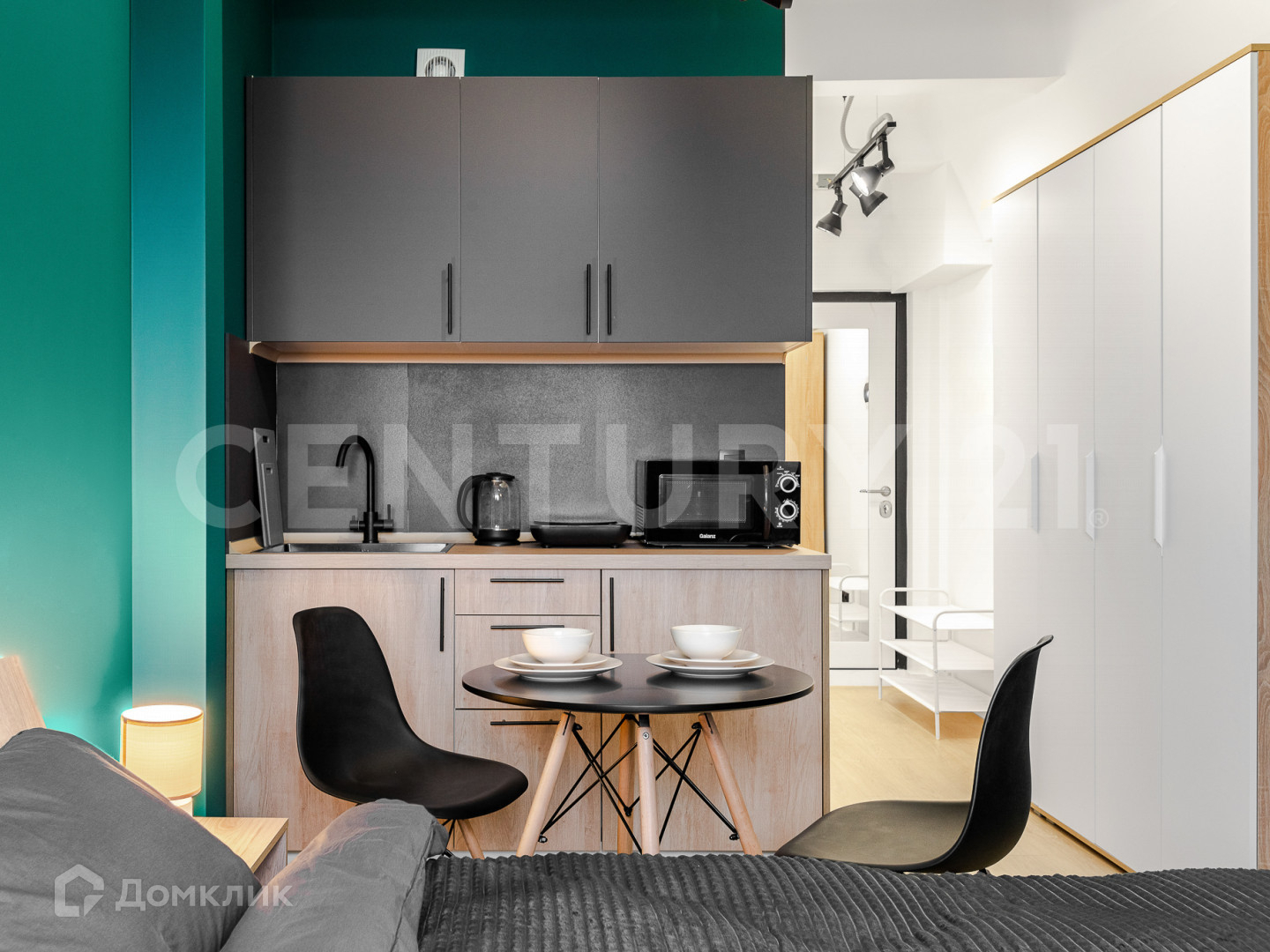 Студия оснащена необходимой мебелью и бытовой техникой для комфортного проживания.
