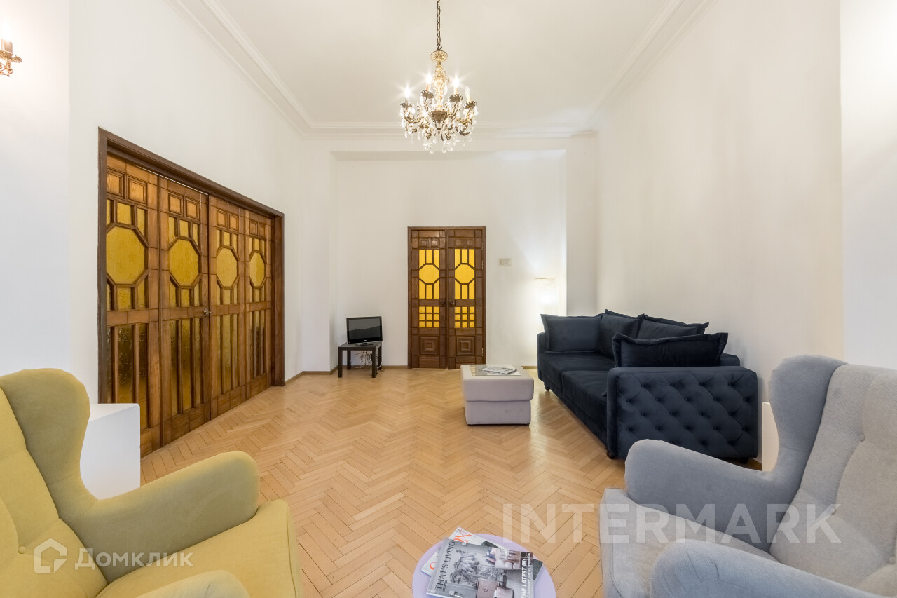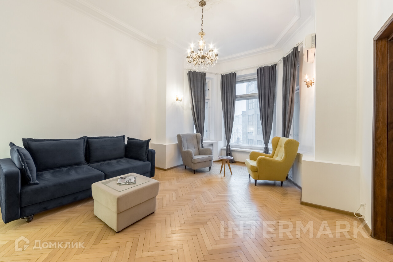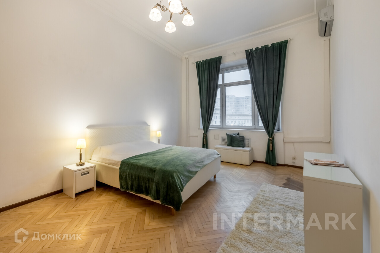 ID 12300 Юлия Дмитриева Интересная 4-комнатная квартира в доме 1949 года постройки на ул. Тверская, в доме 9, монументальном и величественном, ярком образце архитектуры Сталинской эпохи. Характерной особенностью является отделка нижней части фасада плитами из коричневого гранита и многочисленными мемориальными досками в честь прославленных жителей этого дома. Ремонт и отделка самой квартиры в классическом стиле, оригинальный напольный паркет, стены под покраску. В во всех комнатах квартиры в ближайшие дни будет стоять новая мебель. Бытовая техника, кондиционер, водонагреватель установлены. Планировка: общая площадь 135 кв.м: просторная гостиная с эркерным окном, кабинет, большая кухня-столовая с выходом на балкон, 2 большие спальни, ванная комната, гостевой туалет. Потолки 3,6 м. Окна выходят на Тверскую предлагаю великолепные панорамные виды на самый центр столицы и во двор. В подъезде дежурит консьерж. Парковка возможна в закрытом дворе дома за отдельную плату. Можно с детьми. Животные обсуждаются дополнительно. Полезный подарок на новоселье при заключении договора через нас! PLEASE FEEL FREE TO CONTACT US TO GET DETAILED INFORMATION OR TO SET UP A VIEWING! 24/7 HELP DESK SERVICE WITH ENGLISH -SPEAKING OPERATORS,Полностью меблированная, Посудомоечная машина, Стиральная машина, Бойлер, Кондиционер, Видеонаблюдение, Интернет, Балкон, Изолированная кухня, Интерьер в классическом стиле, Мебель в комнатах, Мебель на кухне, Телефон, Телевизор, Окна на улицу, Окна во двор