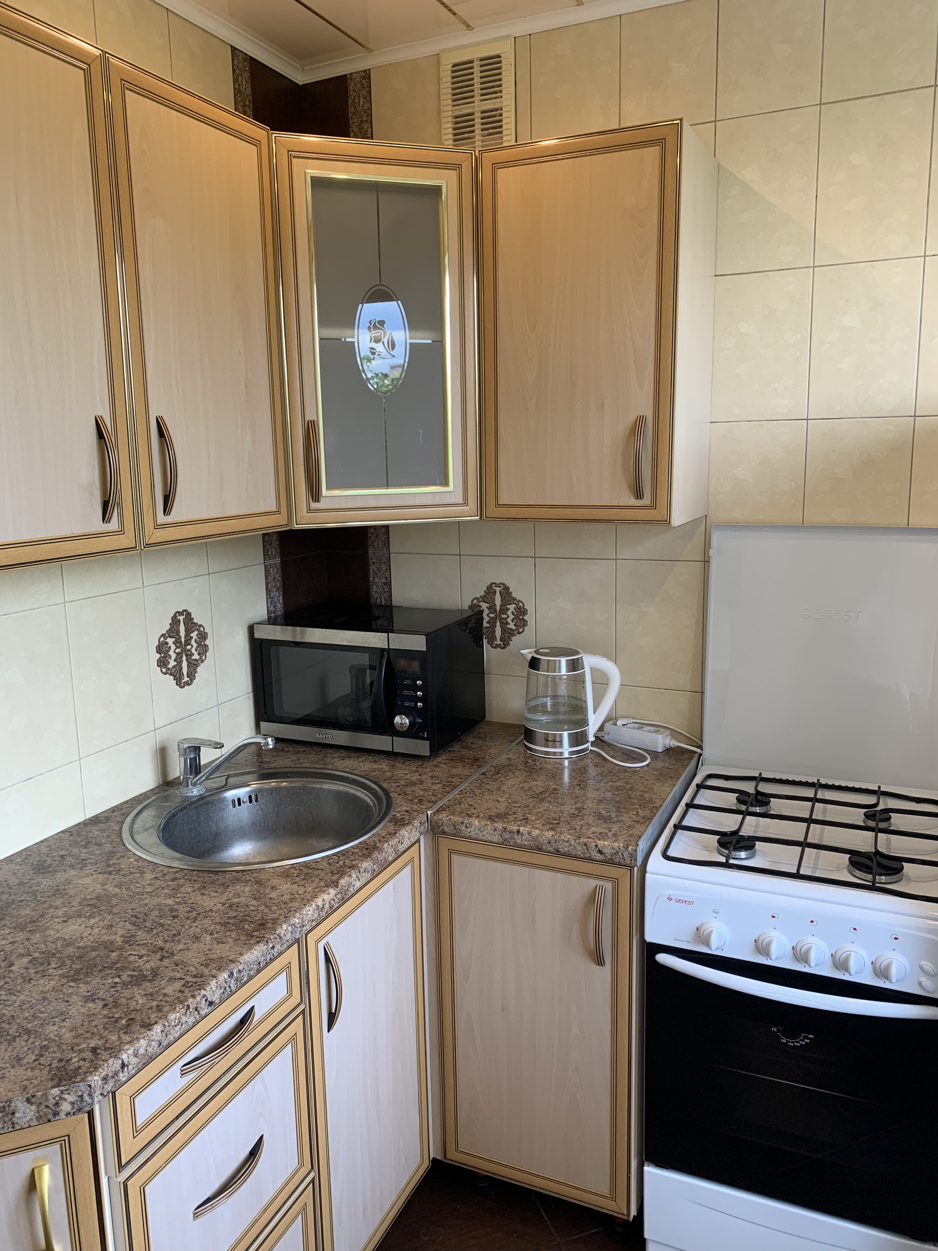 Установлен холодильник, стиральная машина, газовая плита, микроволновая печь, телевизоры, проведен высокоскоростной интернет.