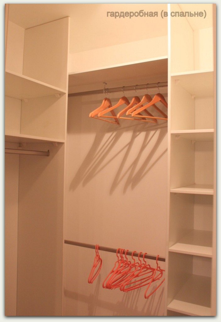 Гардеробная комната в спальне, большое количество шкафов.