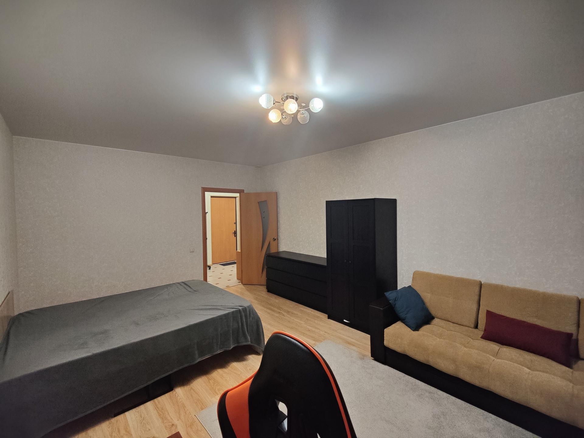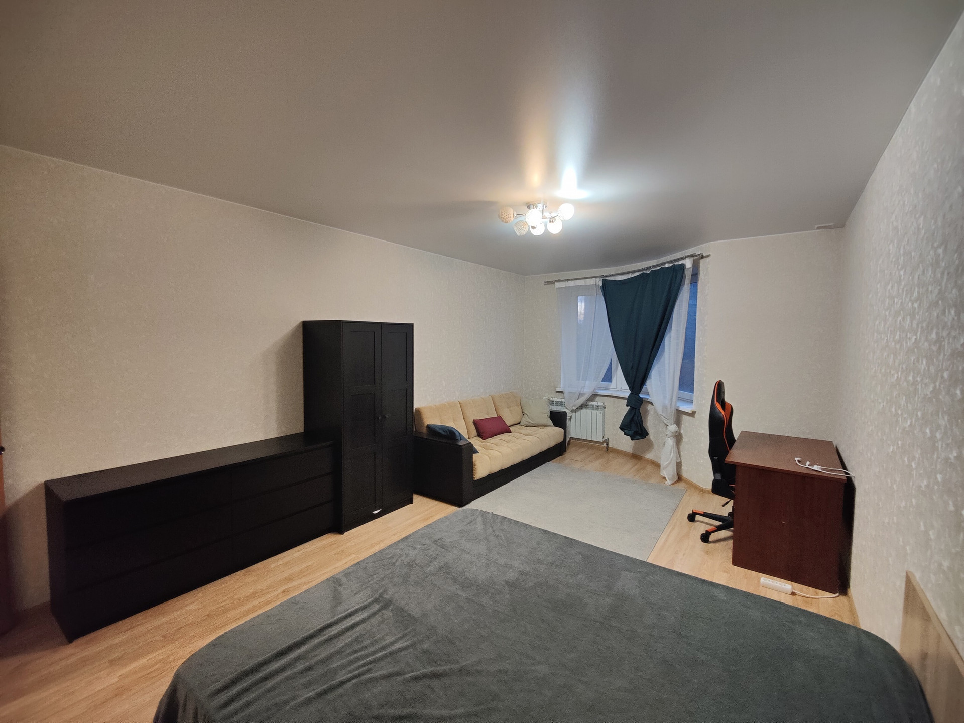 Предлагается в аренду просторная 1-а комнатная квартира общей площадью 52 кв.м. в современном доме. В квартире выполнен свежий ремонт, полностью укомплектована всей необходимой для проживания современной мебелью и бытовой техникой.