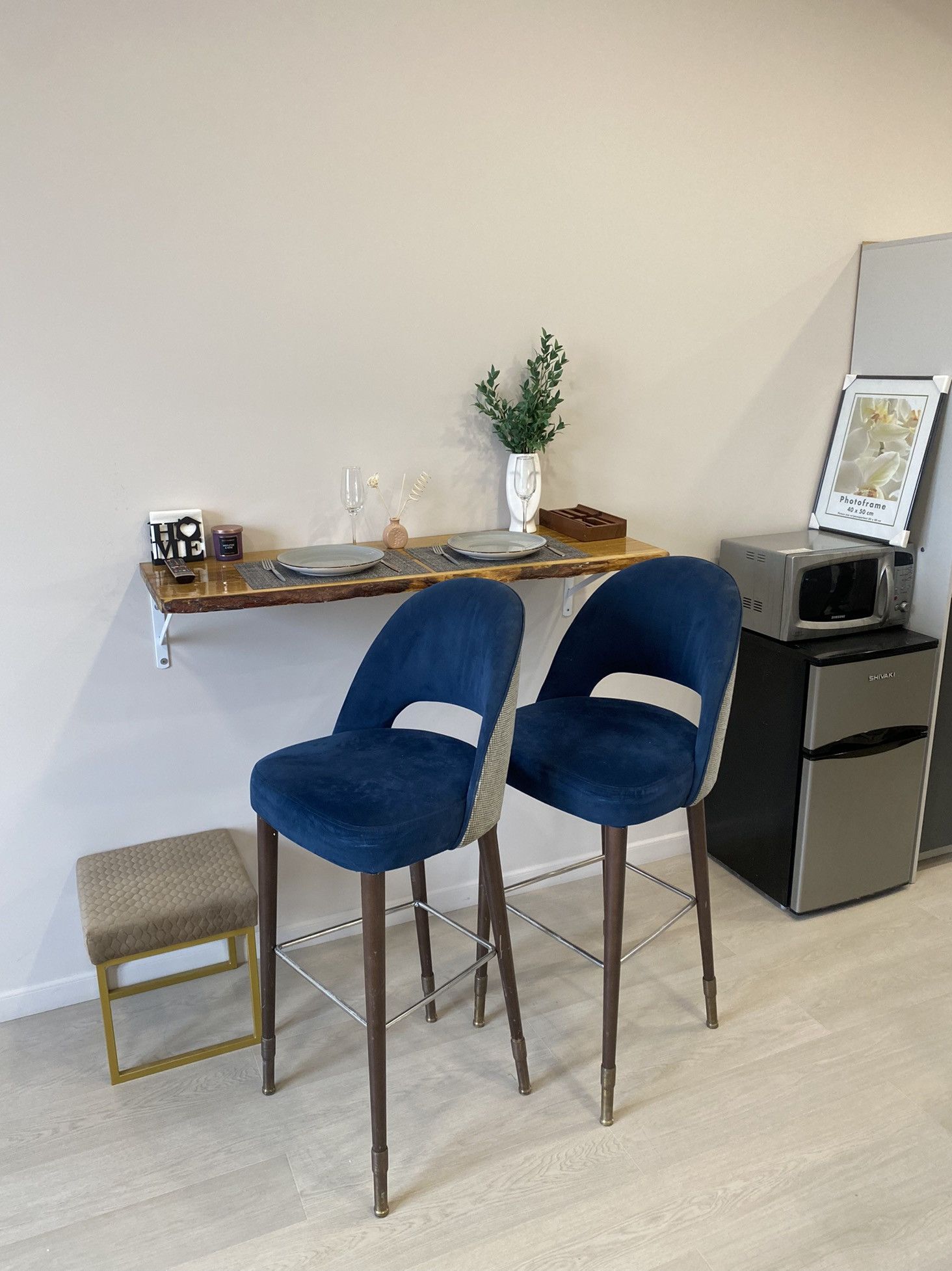 -Чайник, утюг, гладильная доска, микроволновка, холодильник