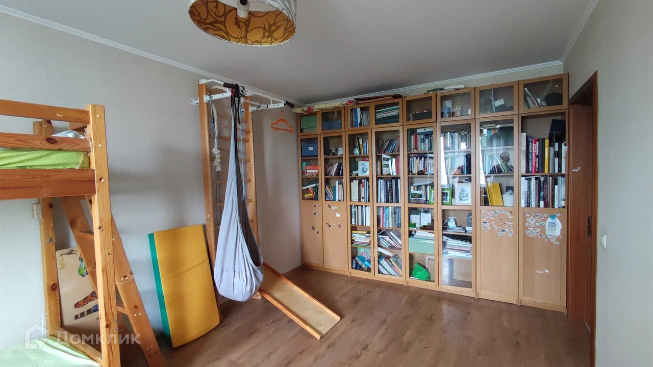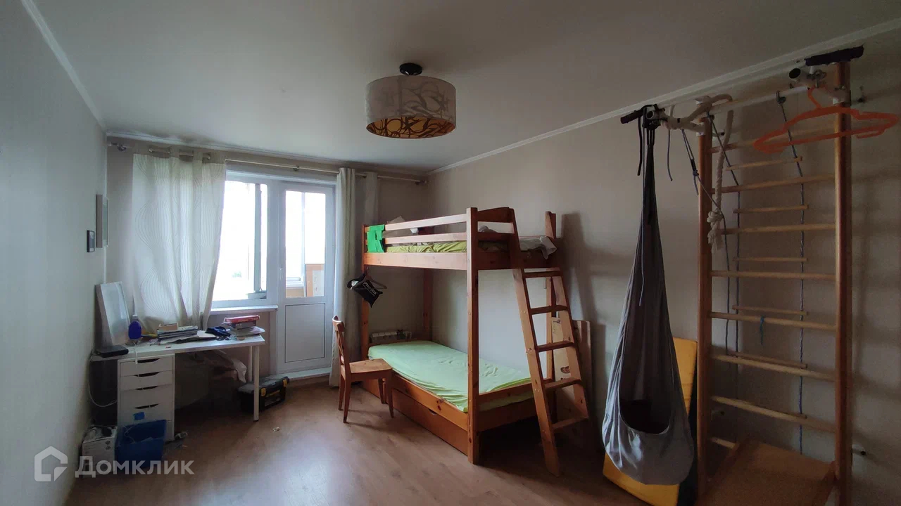 В квартире 2 комнаты, спальня и детская/кабинет. Она отлично подойдет людям с одним-двумя маленькими детьми, рядом с домом много площадок, а если лень выходить - в самой квартире еще и спортивный уголок. Тут же большая спортивная инфраструктура - много стадионов, три скейтпарка, катки, бассейны, на велосипеде можно доехать и до ВДНХ, и до МКАД.