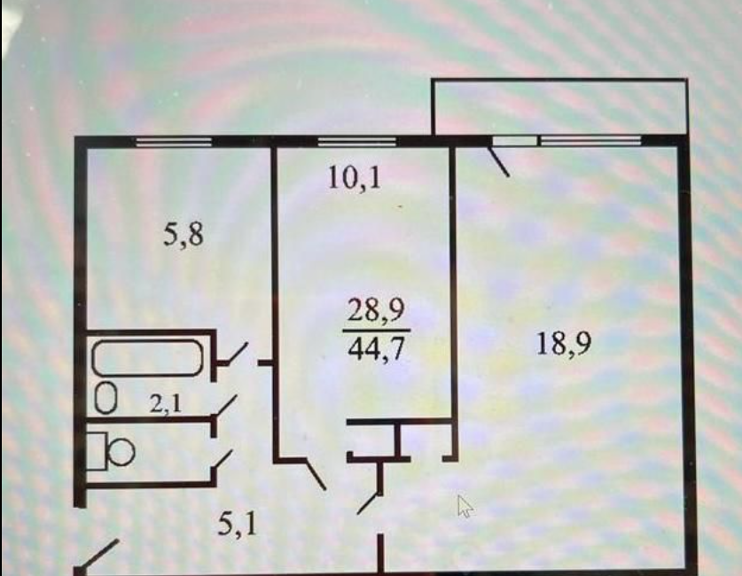 Общая площадь 44.8 м2