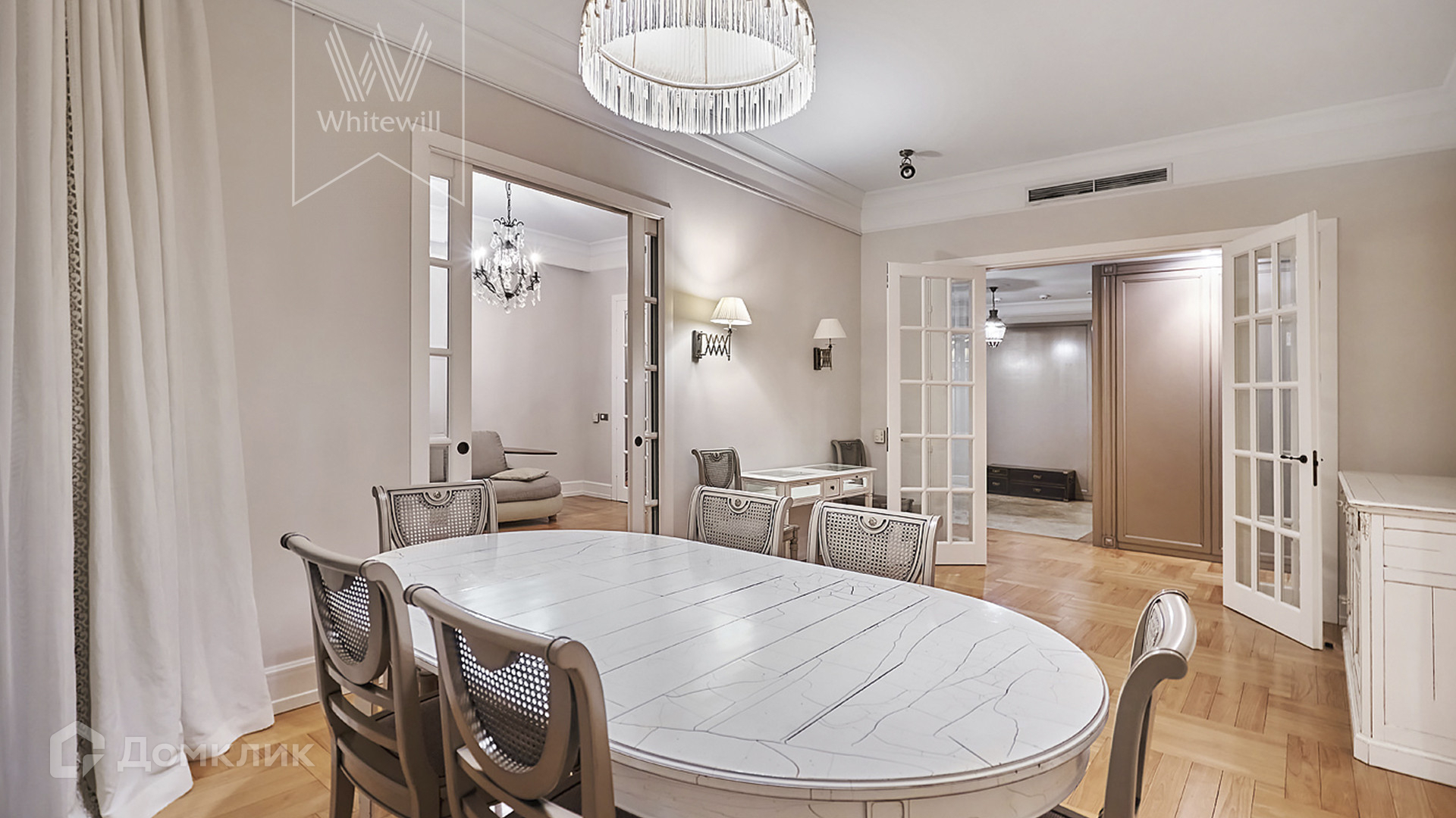 ID 1 259. С коллегами работаем 30/70. Квартира с 3-мя спальнями в клубном доме «Альбер» с приватным внутренним двориком на знаменитой «Золотой Миле». В квартире выполнен дизайнерский ремонт из премиальных материалов. Интерьер оформлен в стиле современной классики в лаконичных светлых тонах. Квартира полностью меблирована и укомплектована бытовой техникой. Из окон открывается вид на Зачатьевский монастырь.