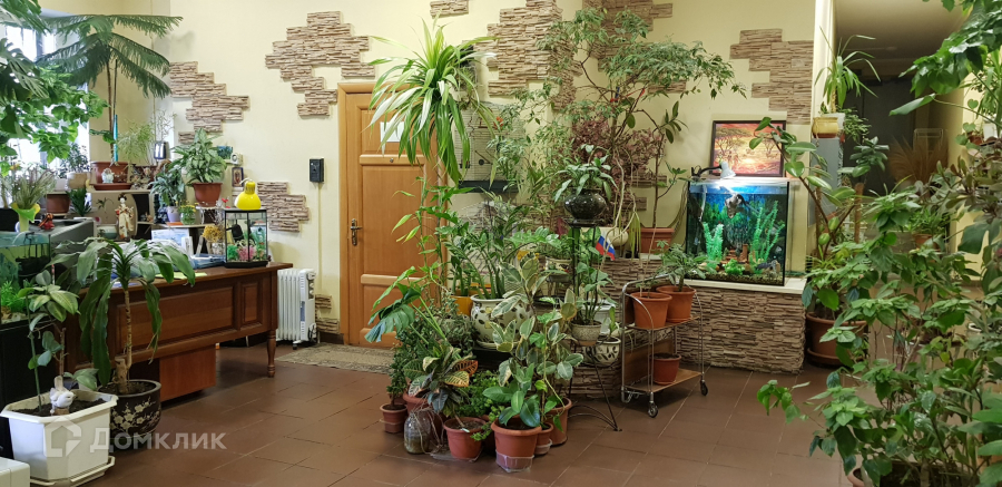 Очень ухоженный подъезд с консьержкой, цветами, аквариумами с рыбками и птицами.