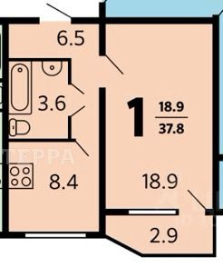 Общая площадь 37.8 м2