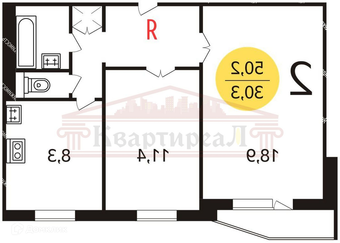 Количество комнат 2