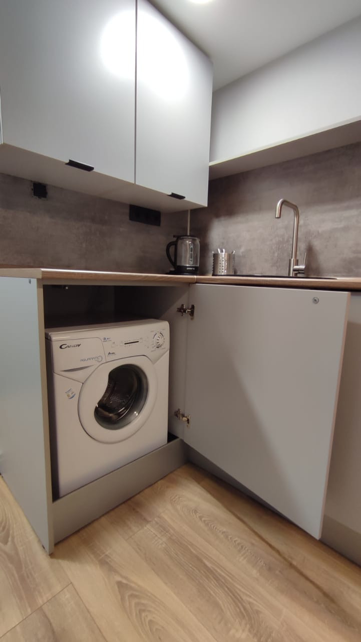 - шкаф и кухня (сделаны на заказ)
