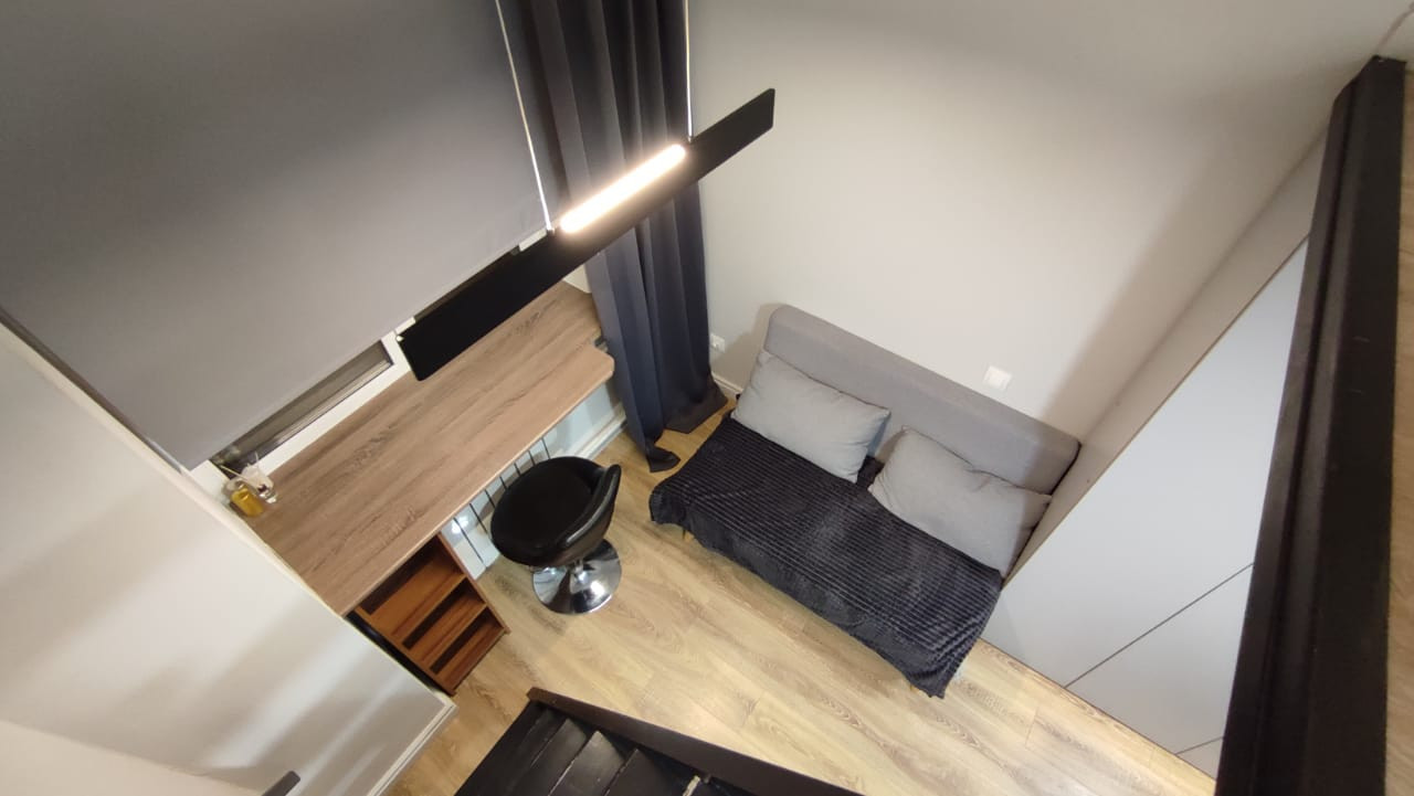 Об аппартаментах: аппартаменты с дизайнерским ремонтом и антресолью со спальным местом. Общая площадь по полу 1 уровня 9,2 м² + антресоль 7 м². В квартире полностью дизайнерский ремонт, все делалось качественно, функционально, соблюдена эргономика пространства.