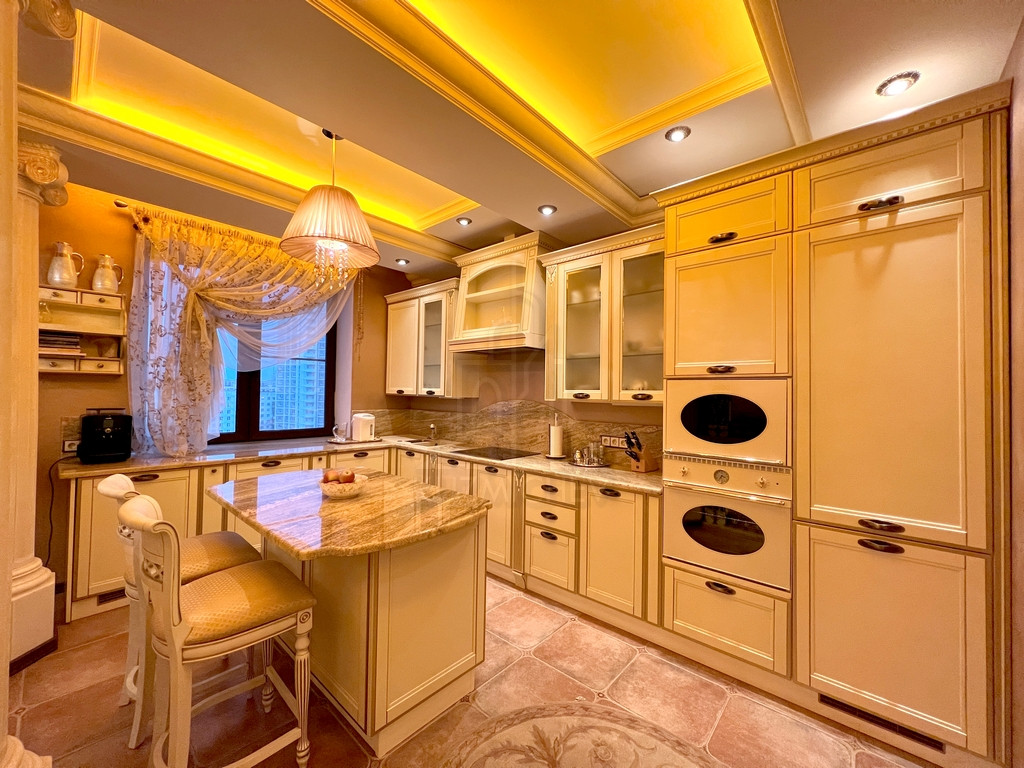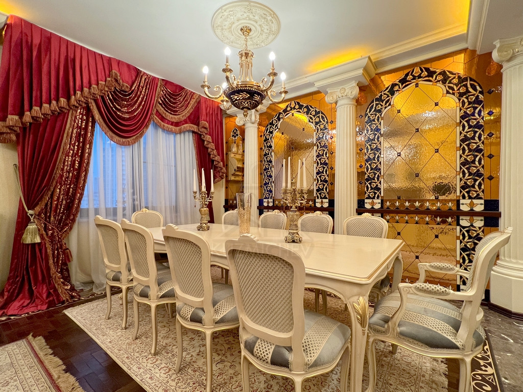 Квартира полностью меблирована эксклюзивной мебелью и укомплектована требуемой б/техникой премиум-класса, 3-х комнатная (2 спальни), площадью 163 кв.м., расположена на 10/20 монолитного дома 2004 г.п. с п/паркингом, высота потолка 3 м.