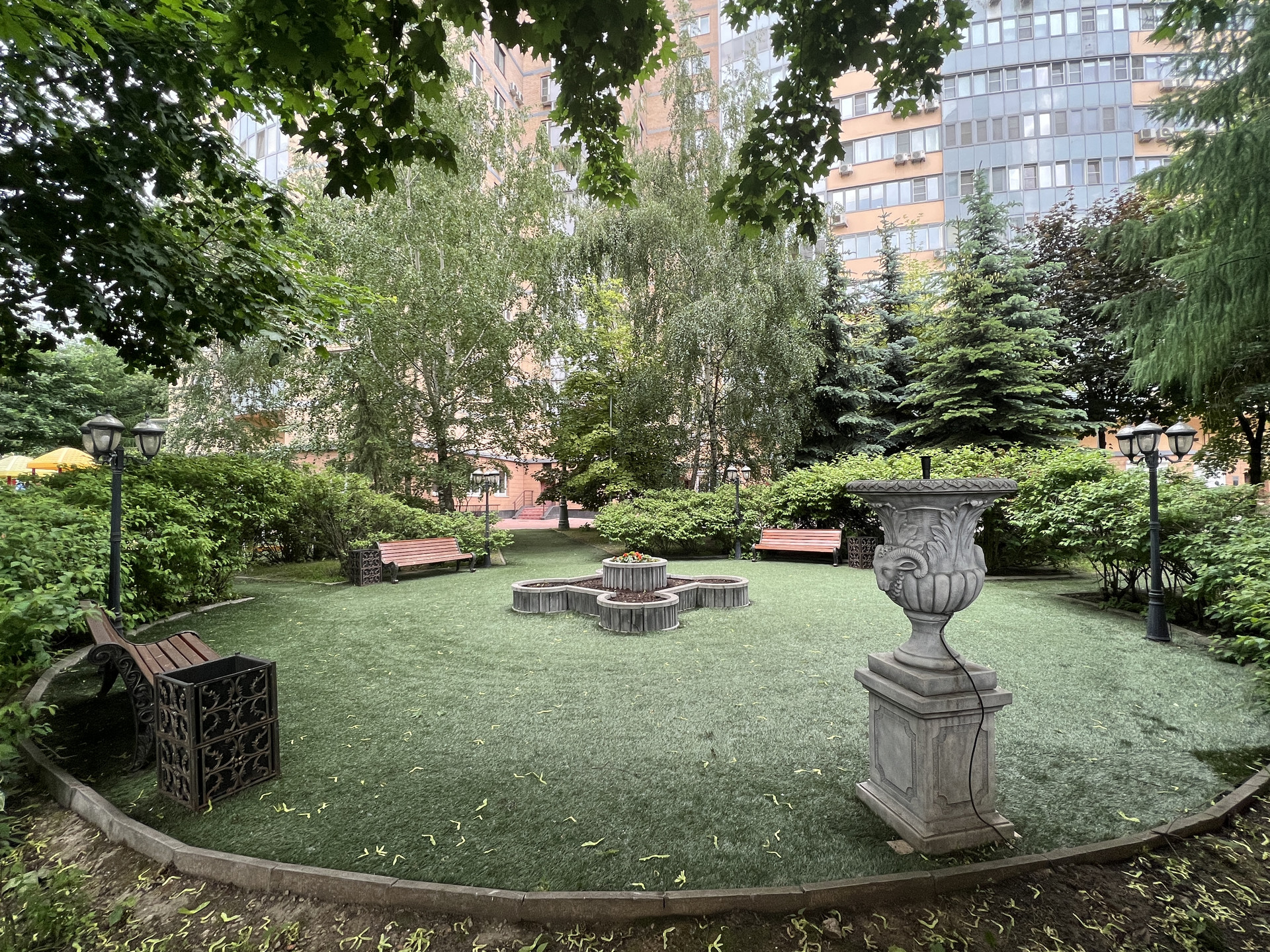 Территория ЖК потрясает великолепием ландшафтного дизайна с элементами парковых зон для уединенного семейного отдыха и даже с местом для барбекю.